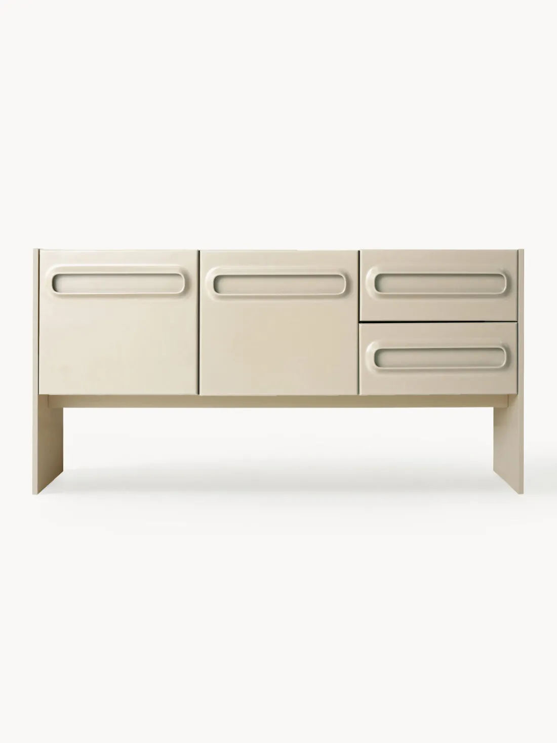 El aparador tiene dos cajones y cuatro compartimentos.