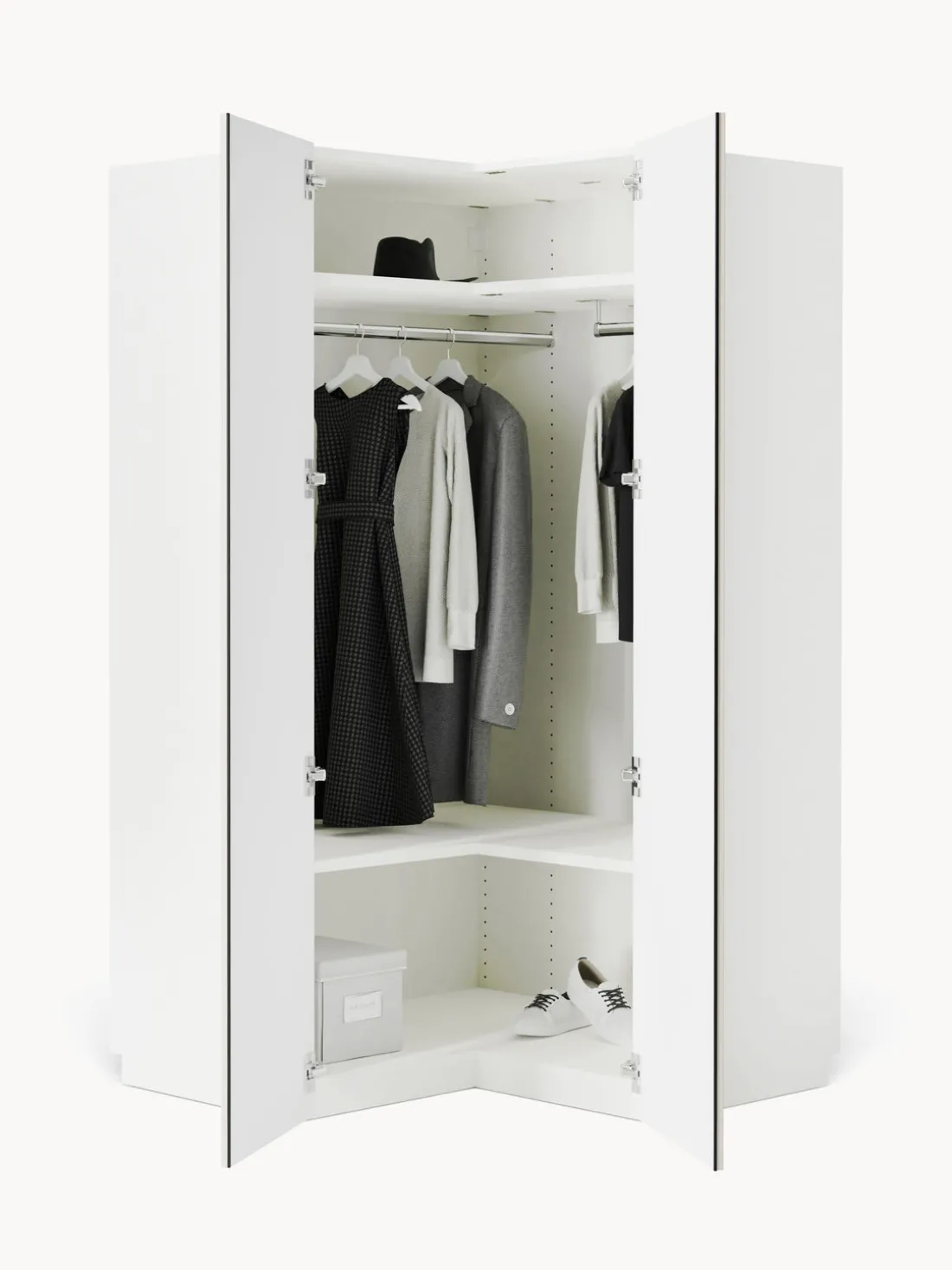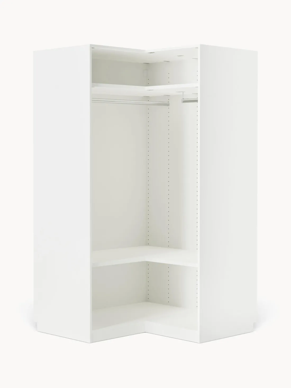 – El módulo esquinero incluye 2 barras para ropa, 2 estantes