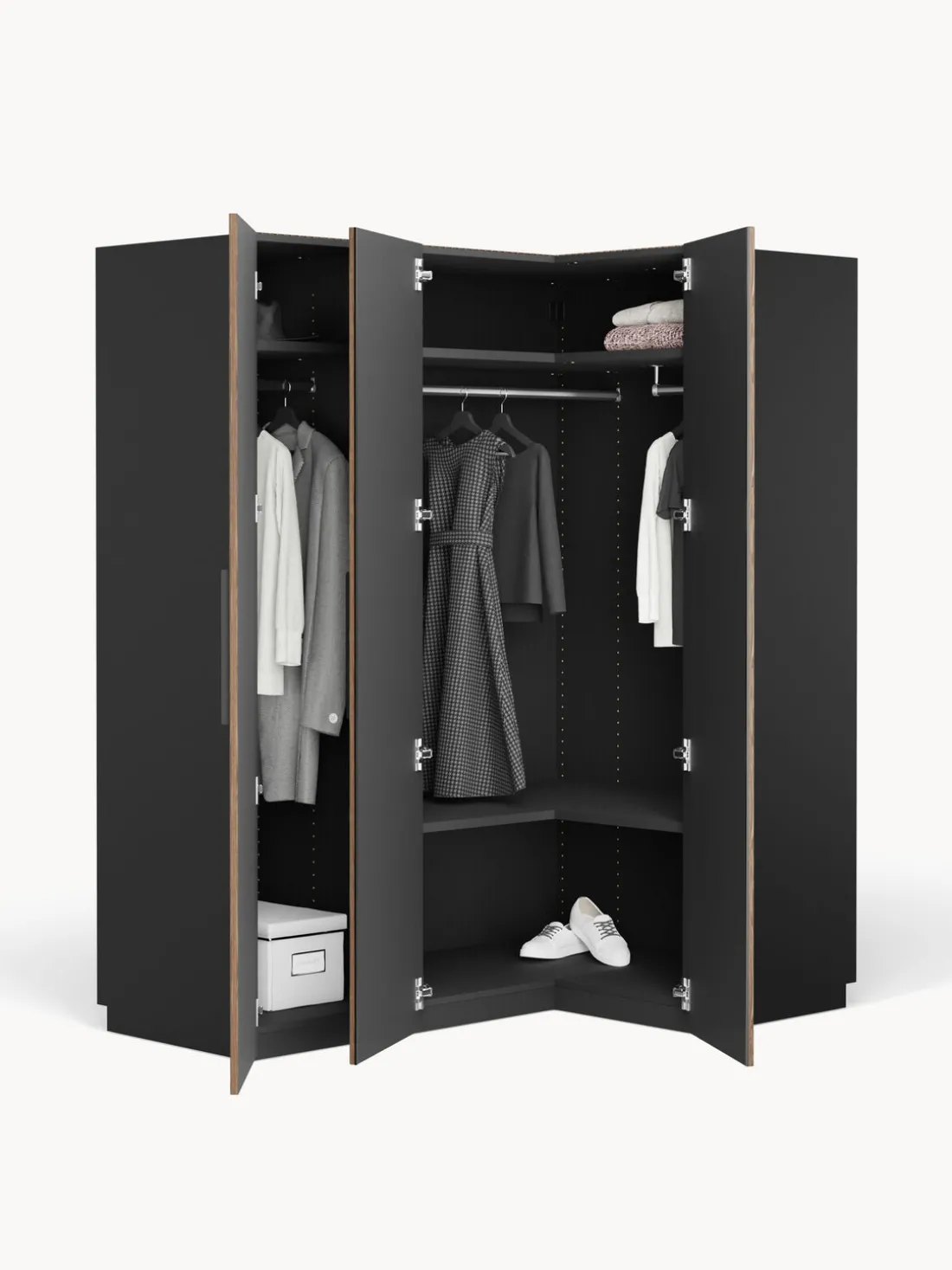 – El módulo esquinero incluye 2 barras para ropa, 2 estantes
