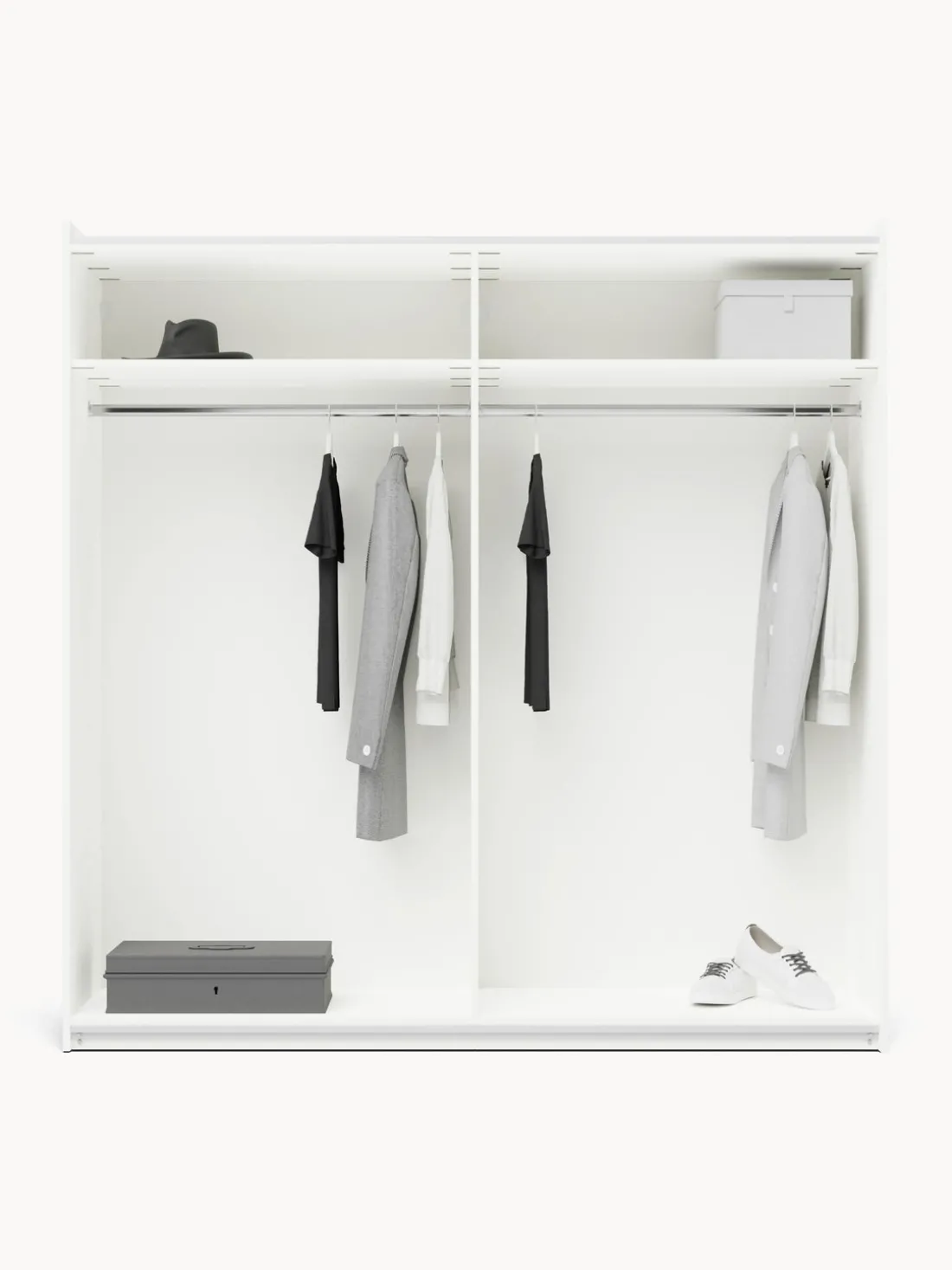 – Armario modular que consta de 2 módulos con diseño interior Basic que incluye 2 barras para colgar ropa y 2 estantes