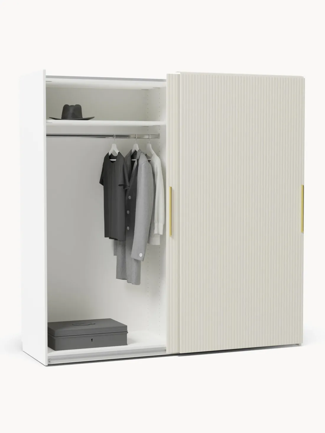 El diseño se mezcla con la funcionalidad. Diseña tu armario Simone a tu gusto combinando módulos individuales o ampliando el armario Simone ya existente. Todos los módulos Simone se pueden encontrar en nuestra gama. ¡Tu armario debe ser tan único como tu estilo! Nuestro armario Simone te ofrece tres interiores diferentes para que puedeas elegir cual te satisficace tus necesidades mejor: