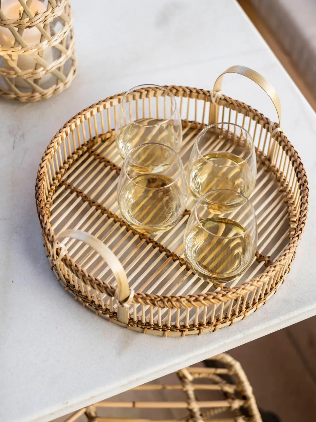 Las bandejas son verdaderos todoterrenos en la cocina: combinan un uso práctico con una estética elegante. Esta bonita bandeja redonda de bambú impresiona por su forma atemporal y sus dos generosas asas, que facilitan especialmente el transporte de alimentos o accesorios. Ya sea como acompañante elegante para servir en el comedor, en la terraza o como elemento armonioso para almacenar en distintas habitaciones, la bandeja se integra sin esfuerzo en cualquier ambiente.