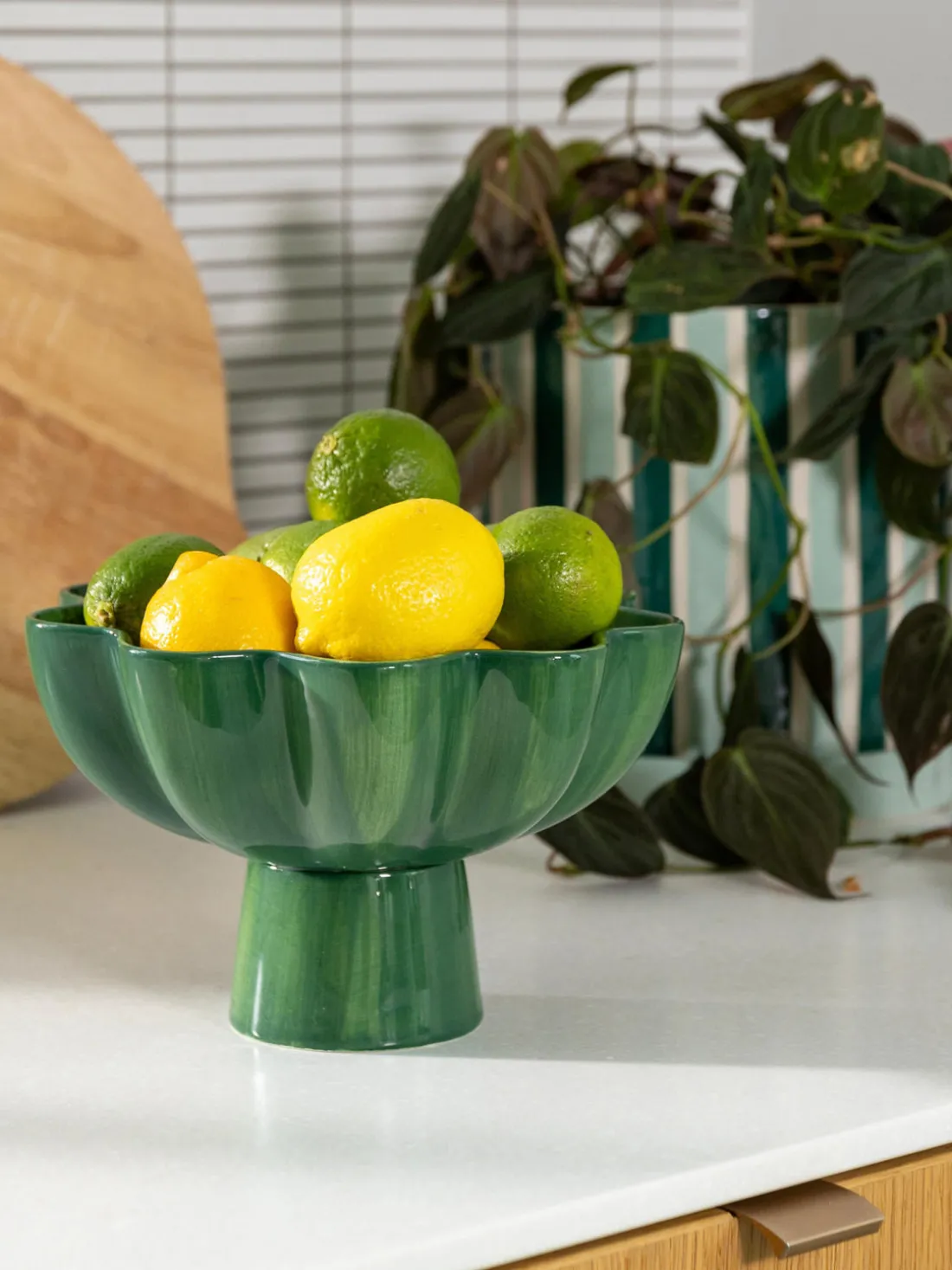 Presenta tus frutas o verduras frescas en este hermoso bol. El bol SUN impresiona por su elegante forma combinada con un llamativo tono verde que llama la atención de inmediato. Su diseño moderno lo convierte no solo en un accesorio práctico, sino también en un verdadero punto de atracción en cualquier mesa.