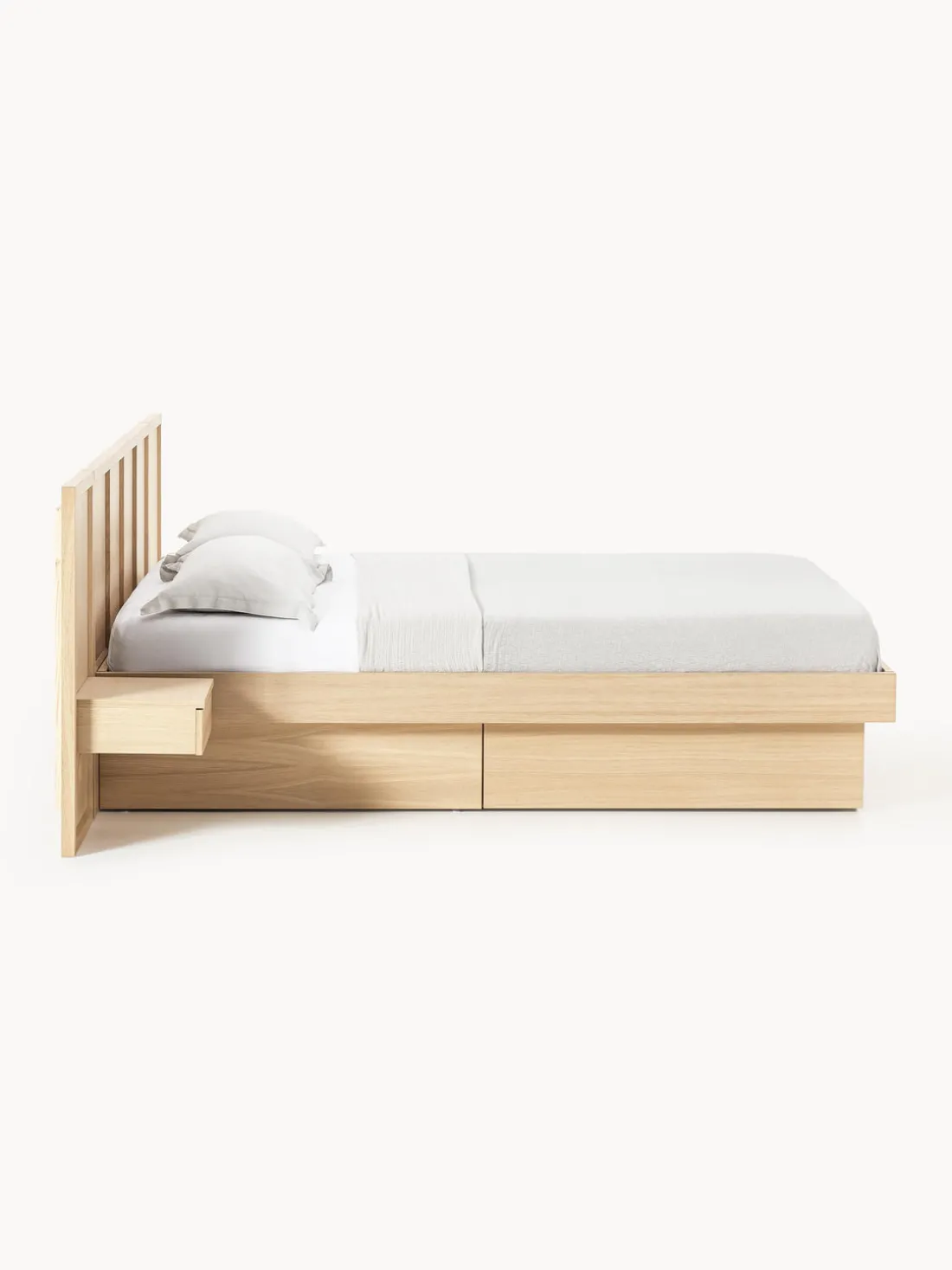 La cama de madera con dos cajones.