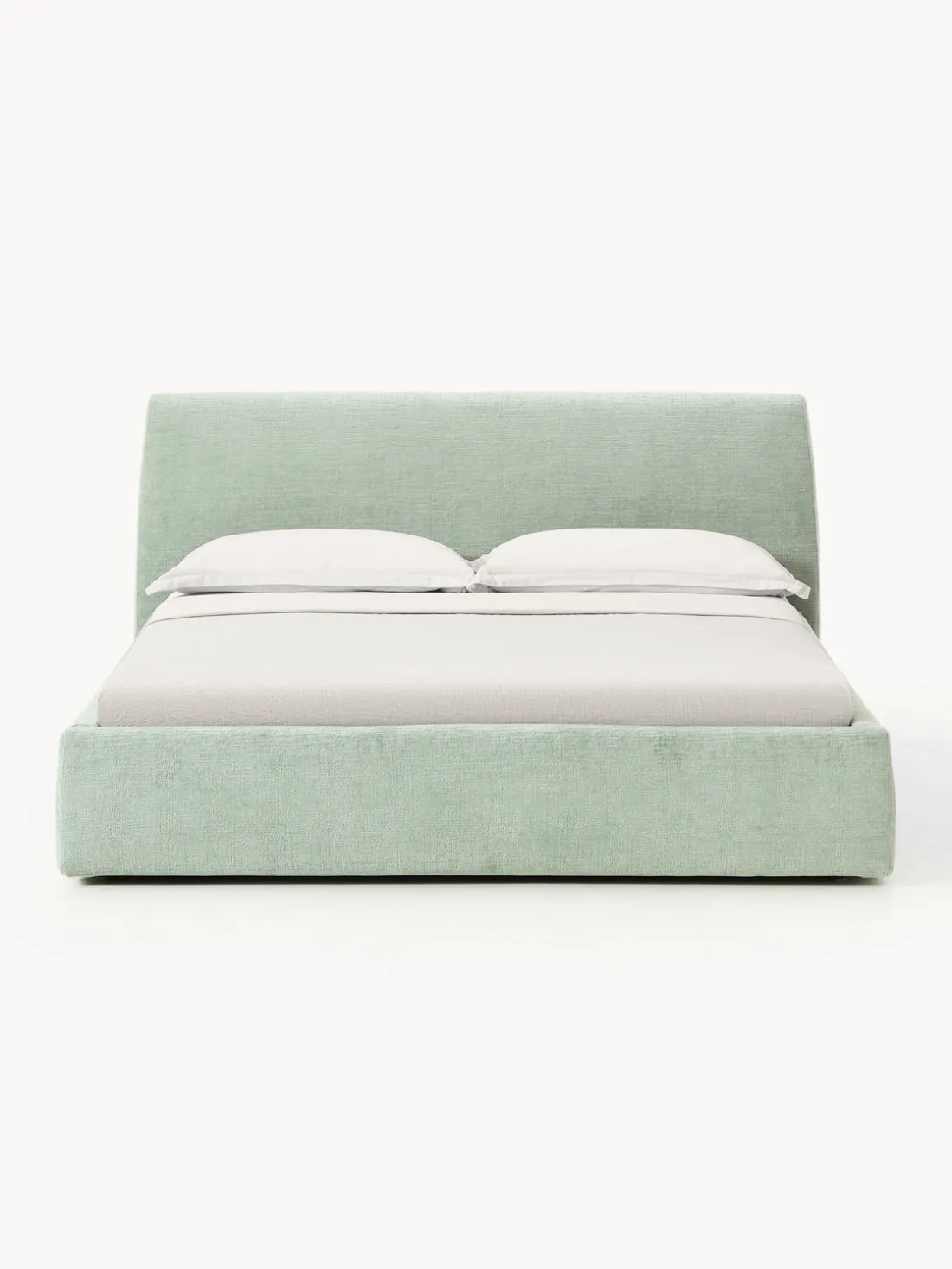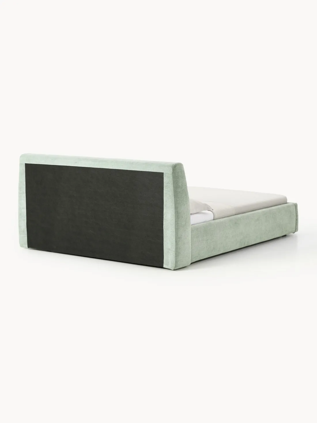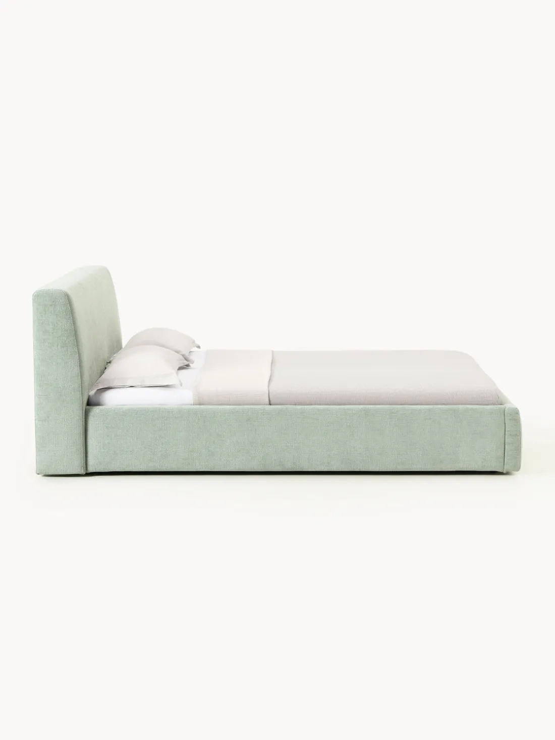 Cama tapizada con espacio de almacenamiento.