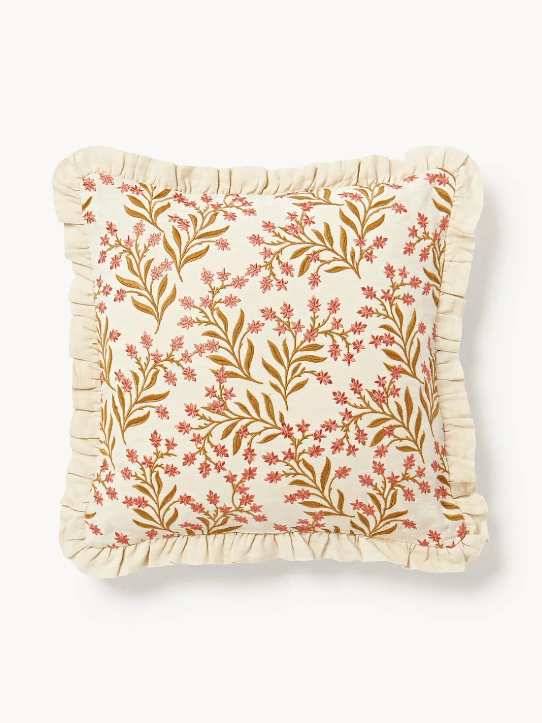 Dale un nuevo soplo de vida a tu interior con este cojín decorativo. El intrincado diseño bordado de AUDREY brilla con los vibrantes colores de exuberantes flores y el juguetón encanto de un paraíso floral. La funda del cojín, 100% lino, está confeccionada con un tejido especial que le confiere un tacto suave y lujoso. El lino es una materia prima natural y renovable, por lo que es una opción ecológica para la decoración de tu hogar.