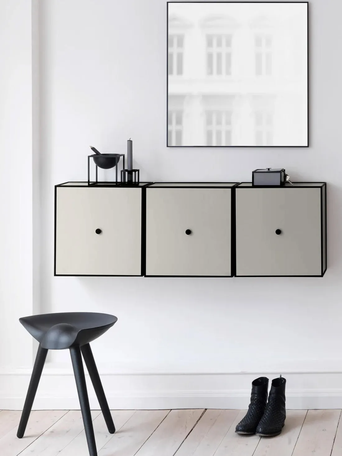 La consola FRAME es una solución de almacenamiento flexible que consta de un módulo cuadrado en un marco cúbico. El sistema de almacenamiento simple se inspira en el candelabro Cubus de Mogens Lassen, basado en estrictas fórmulas matemáticas y diseñado con la máxima precisión. La consola FRAME se puede utilizar en innumerables contextos. Combina los módulos FRAME para crear una estantería clásica, un separador de ambientes o algo completamente diferente.