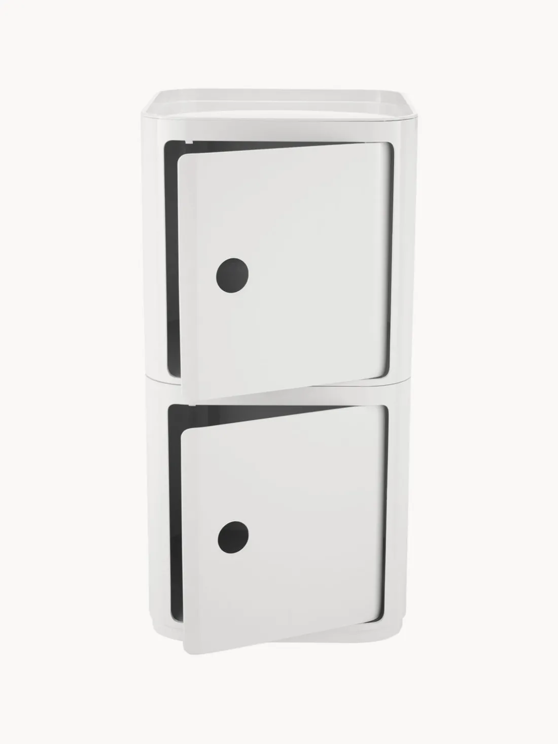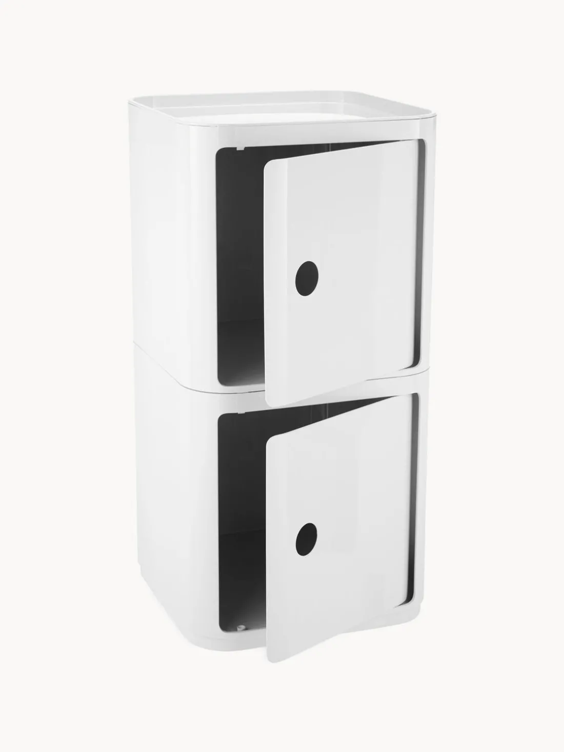 Los módulos han sido diseñados para satisfacer diferentes necesidades y encajar perfectamente en cualquier habitación de tu hogar. La solución de diseño detrás del sistema modular COMPONIBILI es la superposición vertical básica y sólida de las piezas individuales, que simplemente encajan entre sí para crear prácticos espacios de almacenamiento. Los módulos del sistema COMPONIBILI pueden colocarse sobre ruedas. Flexible, funcional, práctico, COMPONIBILI, creado en 1967, es un clásico atemporal del diseño de interiores.
