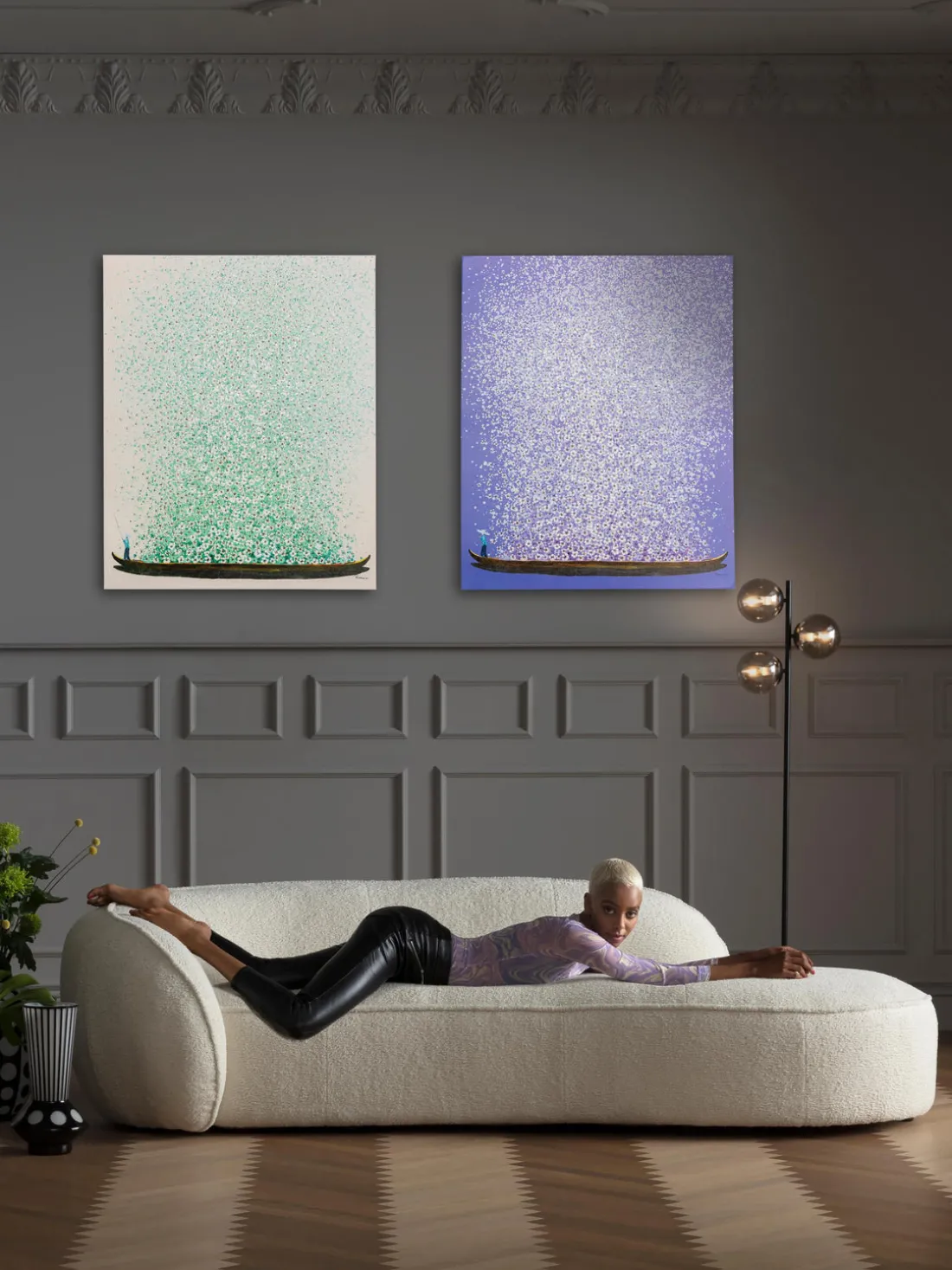 – Pintura con motivo grande con un mar de innumerables flores delicadas