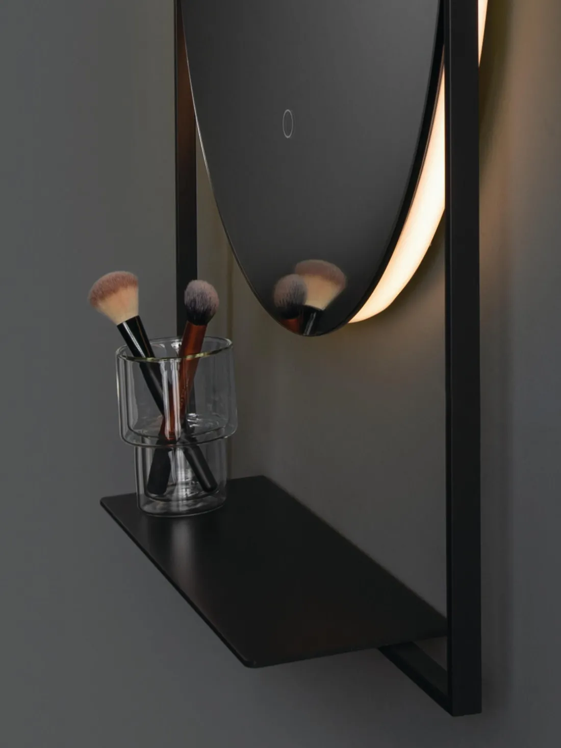 Tiene un sensor táctil que se puede utilizar para encender y apagar la luz y un pequeño estante.