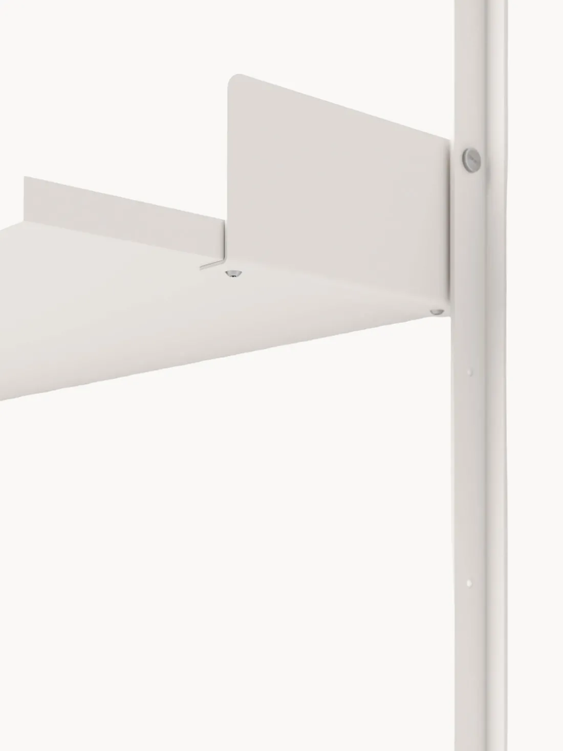 Nada es superfluo, cada detalle está cuidadosamente pensado, desde los distintivos perfiles de los soportes hasta los sujetalibros integrados que mantienen tus objetos firmemente en su lugar. Las estanterías se fijan con tornillos de acero inoxidable ribeteados, lo que añade un toque honesto pero sofisticado al diseño. Un sistema que crece contigo, en tu hogar y en su variedad, para satisfacer una amplia gama de necesidades de almacenamiento.
