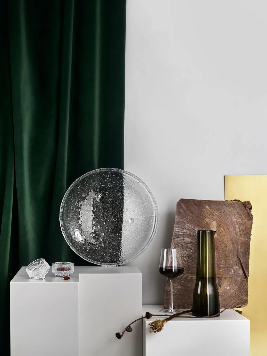 Ultima Thule, de Tapio Wirkkala, es una obra maestra atemporal del diseño finlandés en vidrio. Captura la belleza y la naturaleza virgen de los paisajes nórdicos. Ultima Thule se inspira en los interminables paisajes invernales del norte. La textura única de su superficie recuerda al hielo derritiéndose bajo el sol primaveral.