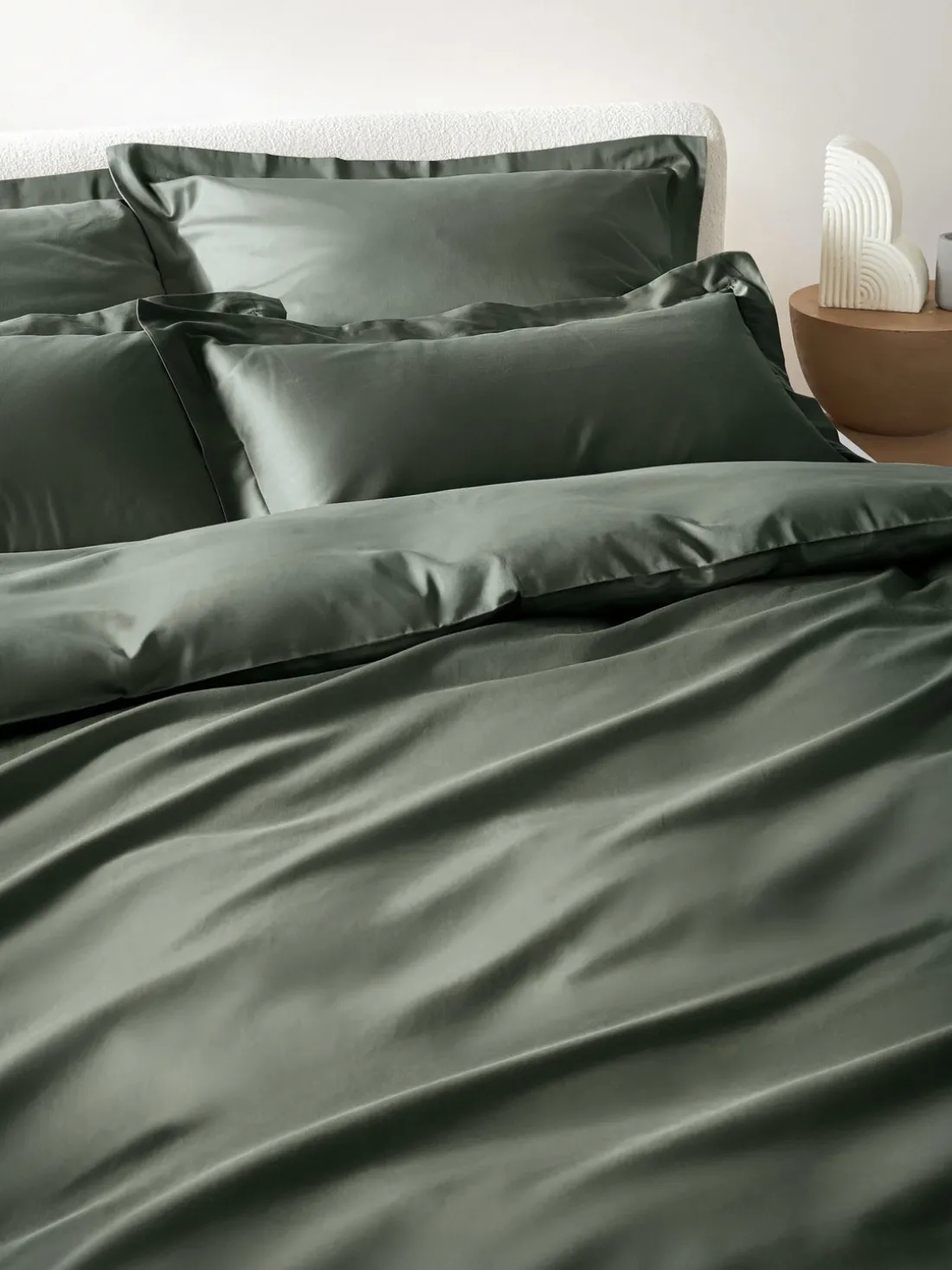 Funda nórdica de satén de algodón con dobladillo elevado, tipo de cierre con botones. Hecho en Portugal.