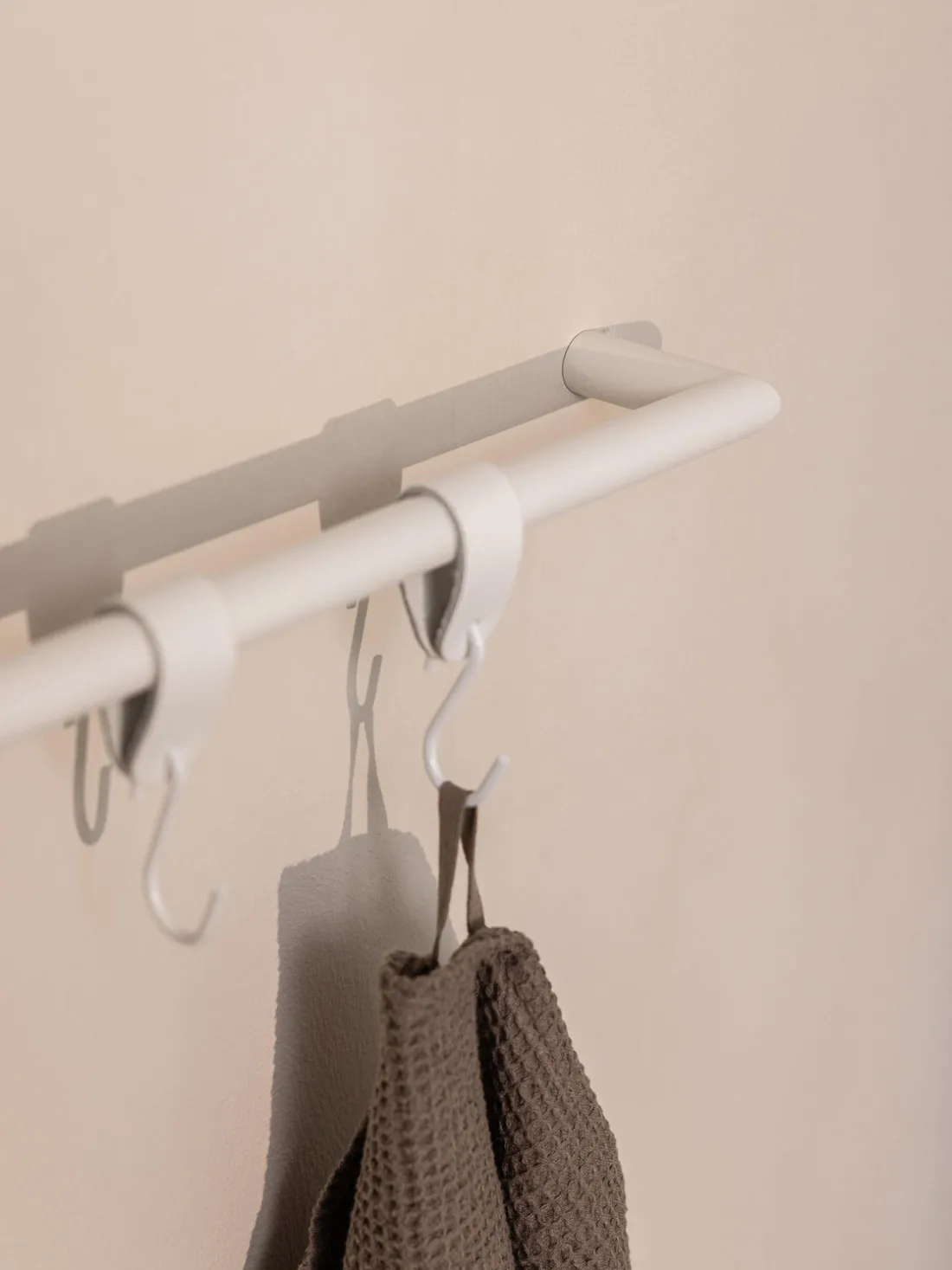 Los percheros S-HAKEN combinan finos elementos metálicos con cuero natural y dan a cada guardarropa una apresentación elegante con esta fascinante mezcla de materiales. Los ganchos de alta calidad tienen una forma asimétrica y adquieren así su aspecto industrial específico.