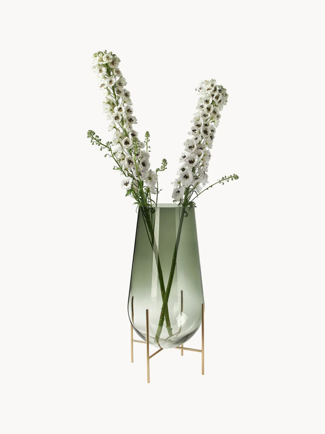El jarrón ÉCHASSE es la primera pieza de la ya icónica colección, que se inspira en las probetas de laboratorio. Su forma de lágrima es igual de elegante cuando sostiene flores sobre un escritorio o en el salón, o cuando se deja sin llenar. Los degradados de color únicos del vidrio añaden profundidad al diseño y contrastan con las líneas limpias de las patas.