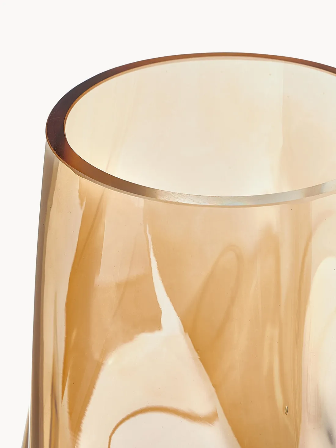 ¡Qué bonito! Las flores cortadas no pueden exponerse de forma más bella que en nuestro jarrón de cristal soplado Luster. Se ve especialmente bello cuando la luz se refracta en el jarrón y el cristal color champán brilla en una gran variedad de tonalidades.
