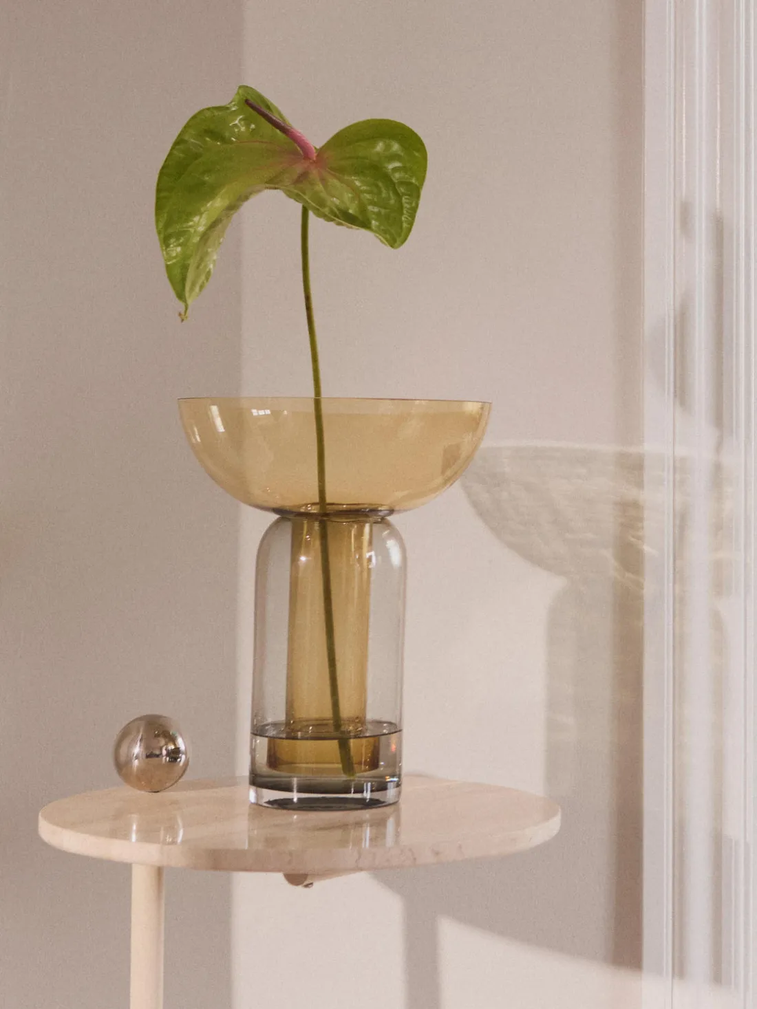 Con su aspecto exclusivo, el jarrón Torus es un elemento único en cualquier hogar, perfecto para adornos florales, ramas y plantas. La combinación de las dos piezas de vidrio de color da como resultado un jarrón elegante y escultural, ideal para cualquiera que busque ese toque especial.