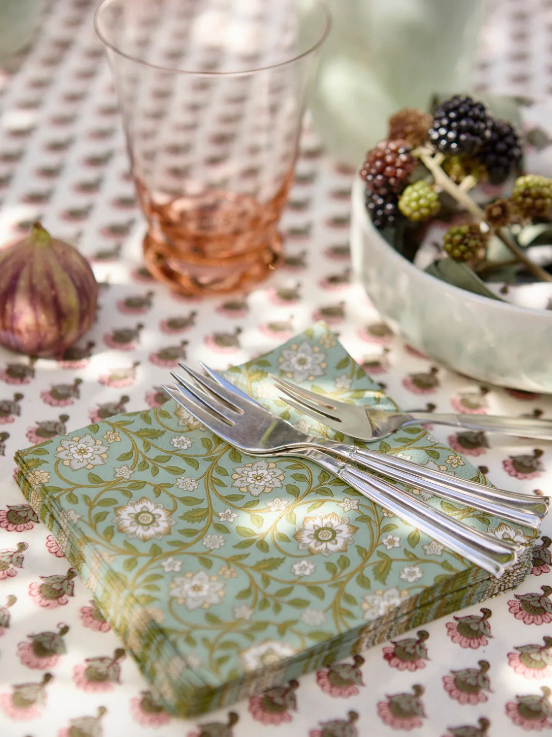 Mantel artesanal con estampado floral Melon
