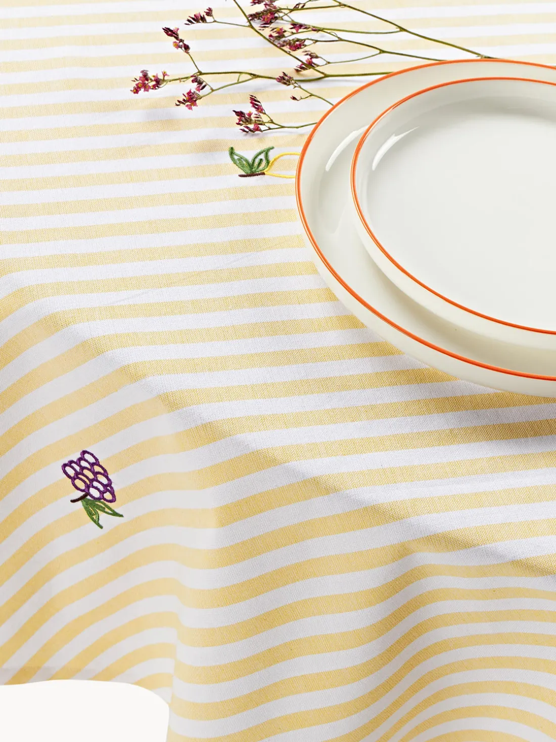 Mantel redondo a rayas con motivos bordados Melony