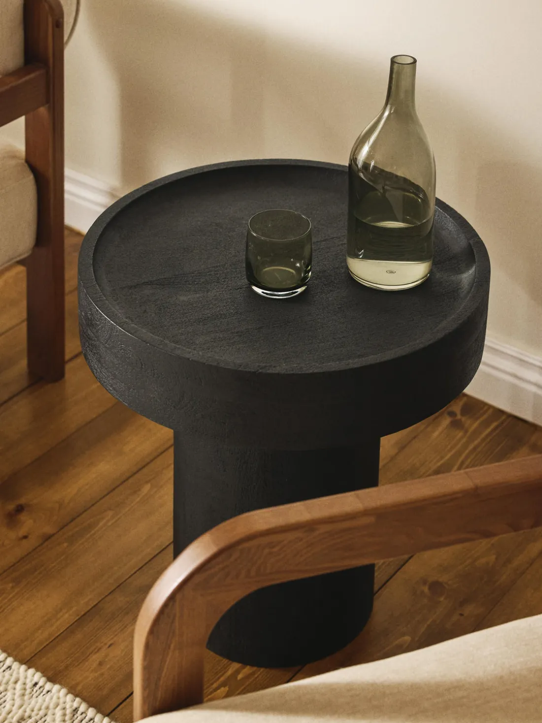 | Color | Madera de mango lacada en negro |