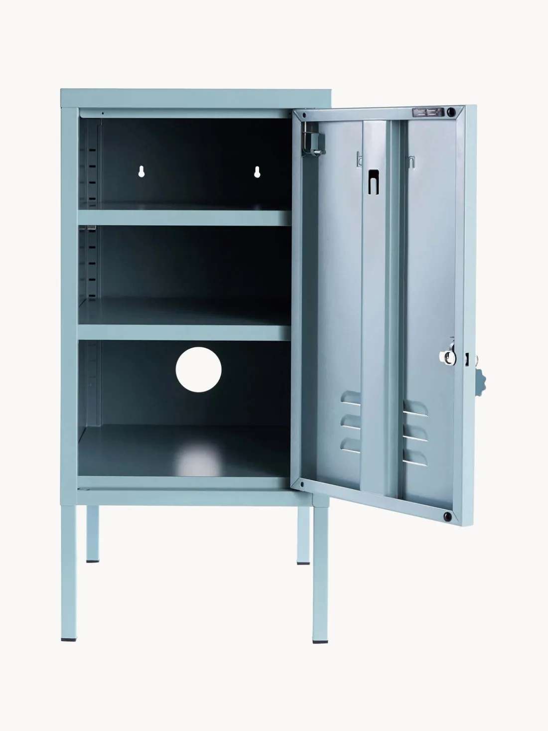 El producto tiene dos compartimentos, un gancho práctico, un pasacables y dos puntos de fijación a la pared. Las baldas son ajustables en altura para adaptarse a tus necesidades individuales.»