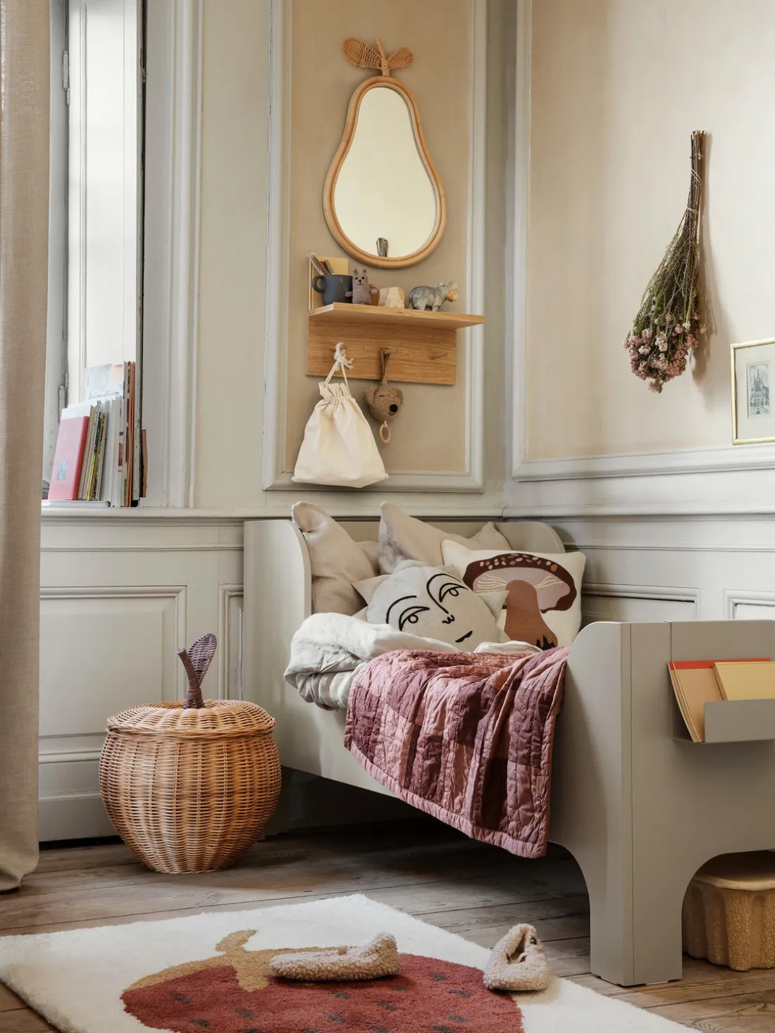 La estantería Place muestra cómo la necesidad de almacenamiento y la estética pueden realizarse en una sola forma. Es fácil de montar y se puede utilizar, por ejemplo, en la cocina para los paños de cocina y la vajilla favorita, en el pasillo como perchero o para los cachivaches de la habitación de los niños.