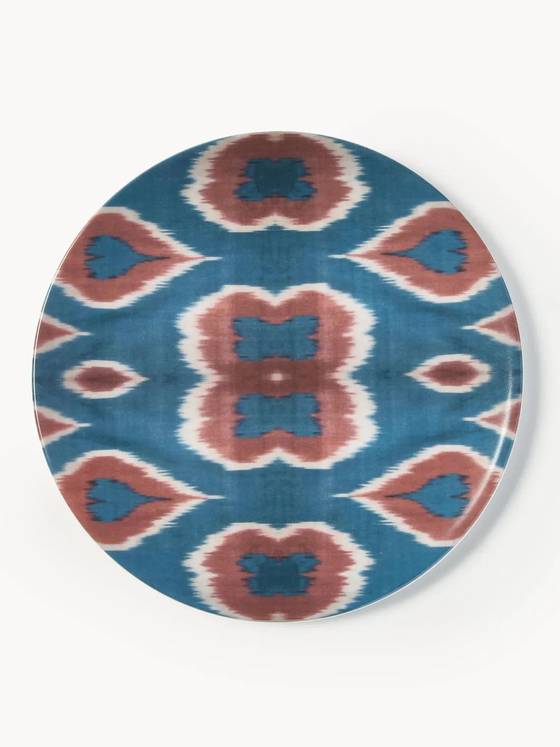 Plato postre artesanal de porcelana Ikat