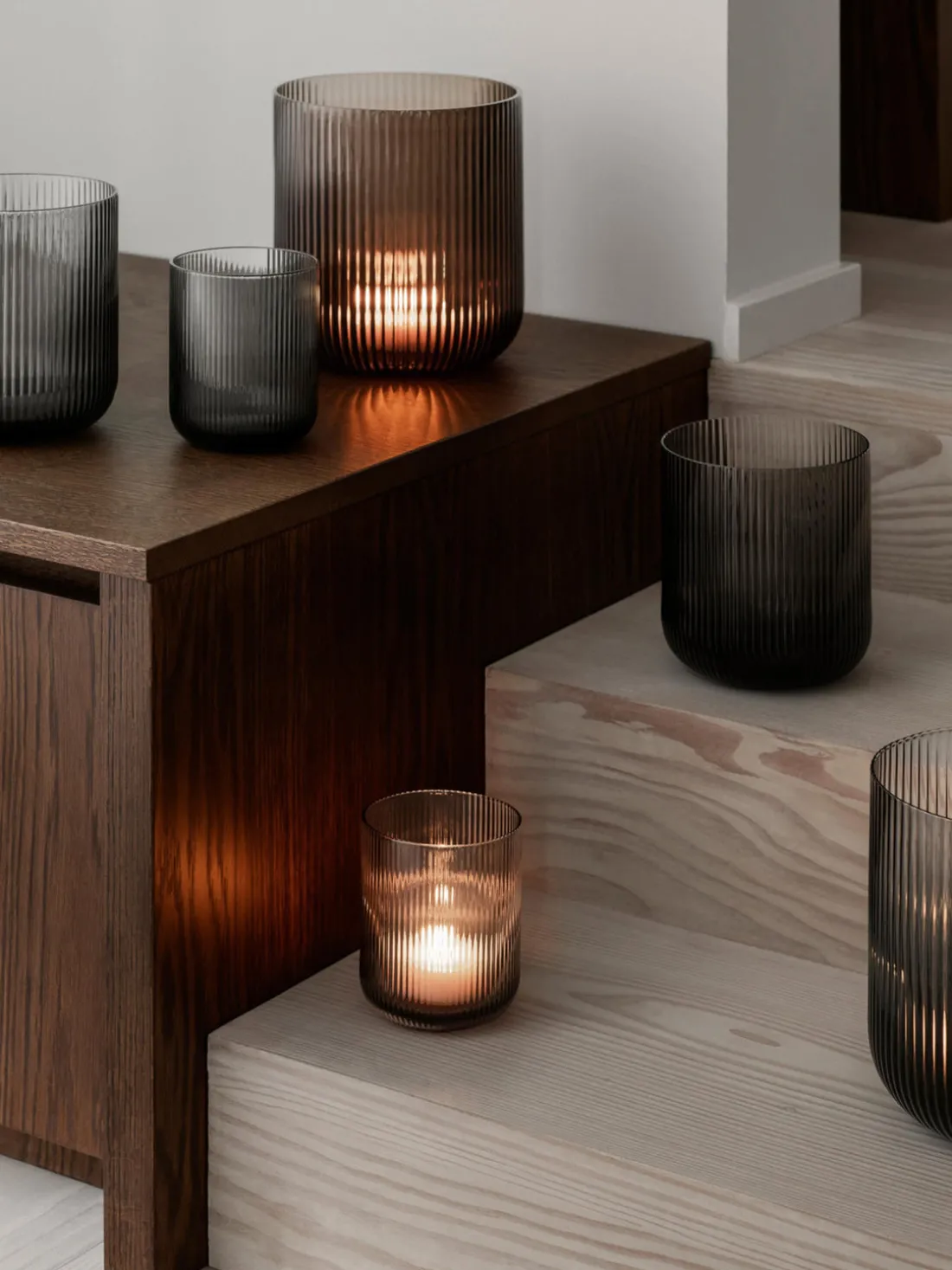 Portavelas de vidrio con relieves Ven, 16 cm