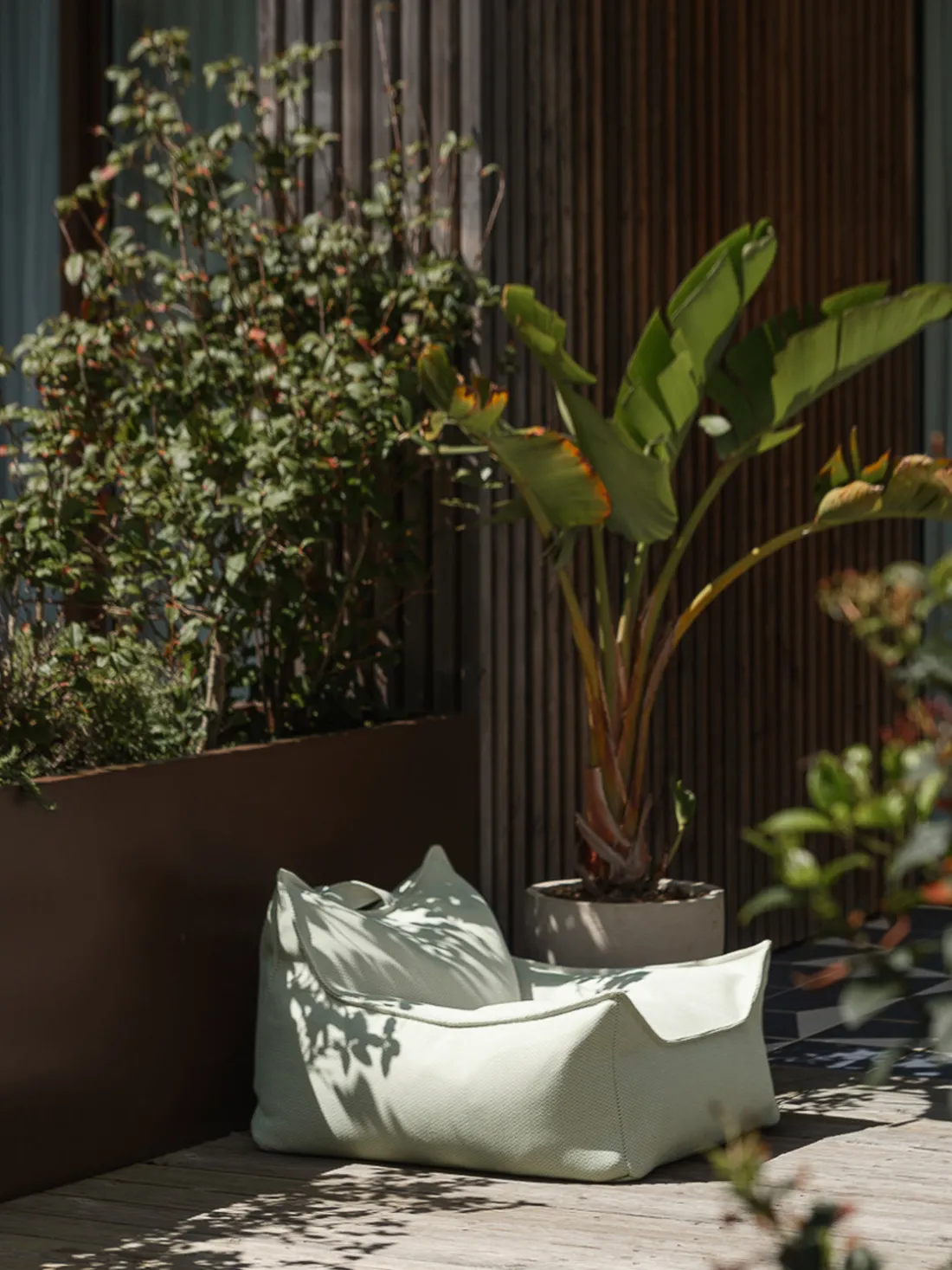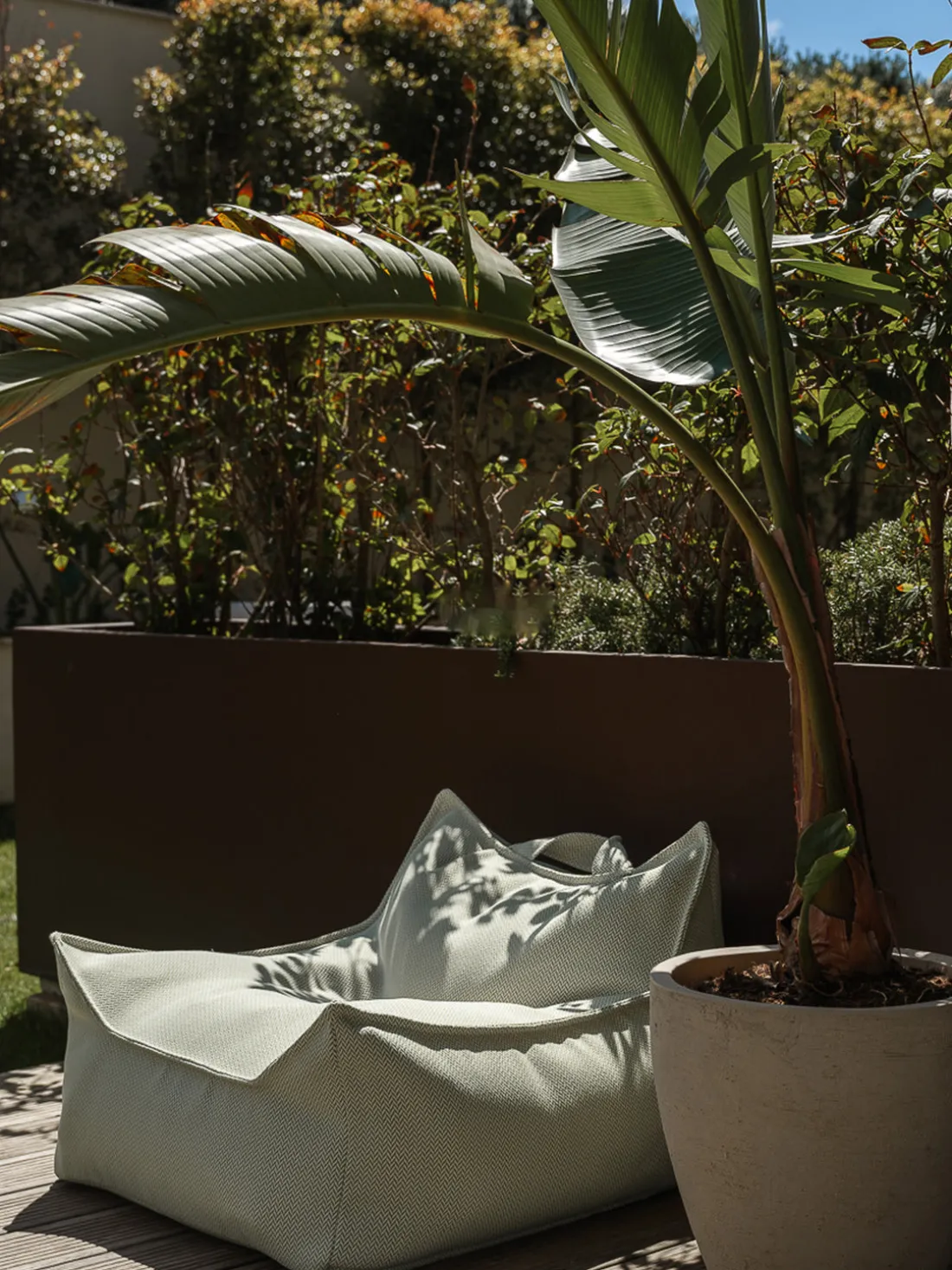 Dispone de una resistente funda exterior que repele el agua y la suciedad, pero no es completamente impermeable. En el interior, un revestimiento impermeable protege el relleno. Diseñado para facilitar el movimiento y la relajación, es el complemento perfecto para cualquier espacio exterior.