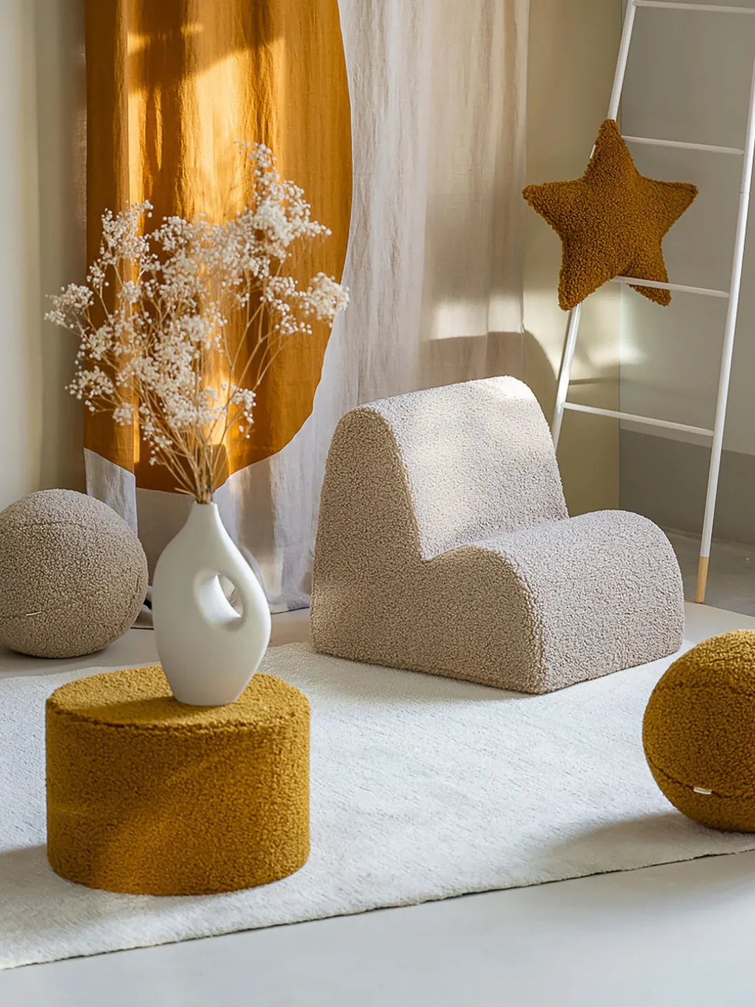 SKU: SKUDEQ24WIG16536 Categories: Decoración Infantil, Mesas Y Sillas Infantiles, Muebles Infantiles, Niños, Puf Infantiles Tags: Borreguillo Mostaza, Niños, Wigiwama Brand: Wigiwama