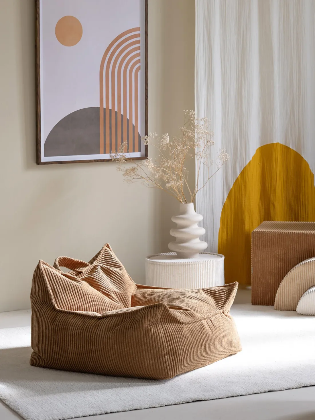 El toque definitivo para la habitación de los peques: este puf será el nuevo lugar favorito de tu hijo. Su cómodo relleno de perlas de espuma y su tapizado de pana suave de alta calidad garantizan una gran comodidad.