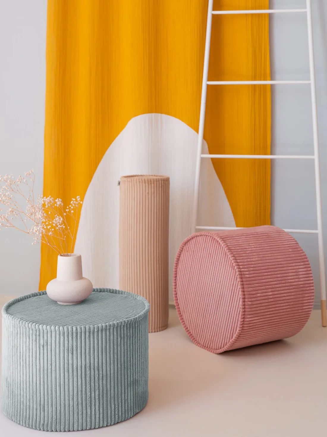 Este puf es tan elegante como funcional y puede utilizarse como reposapiés o asiento adicional. El relleno de espuma estable y cómodo y la funda de pana suave y de alta calidad lo convierten en el lugar favorito de tu hijo.