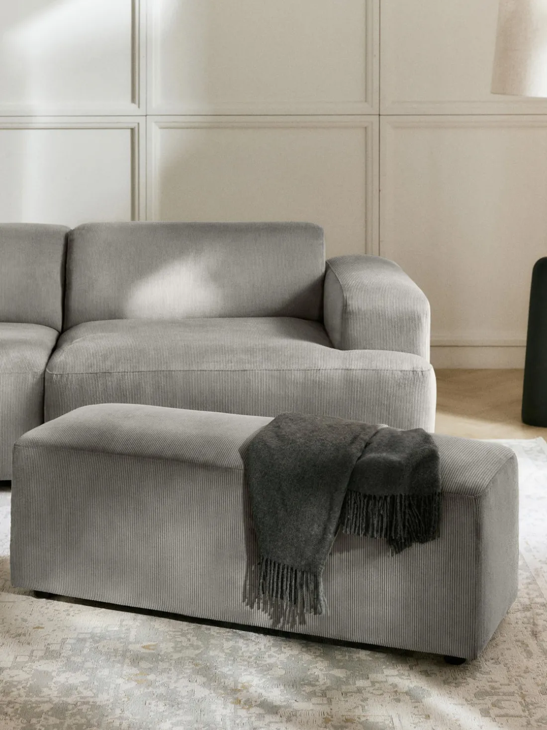 Puf reposapiés de pana Melva, 99 x 42 cm