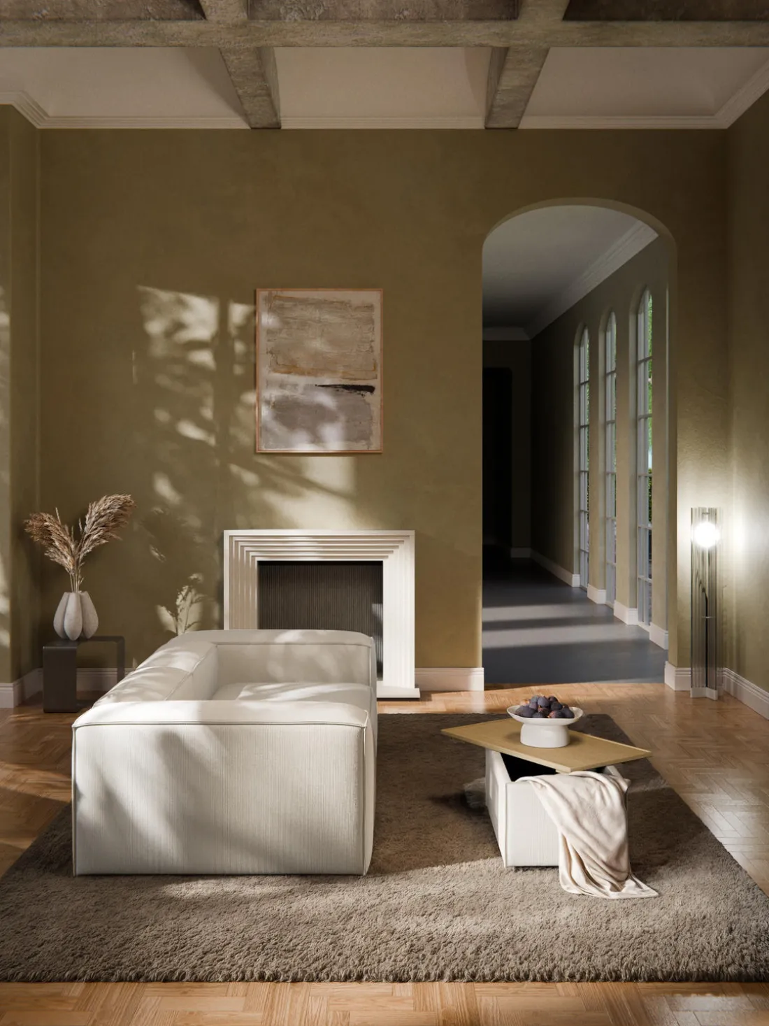 Reposapiés puf de pana con espacio de almacenamiento Lennon