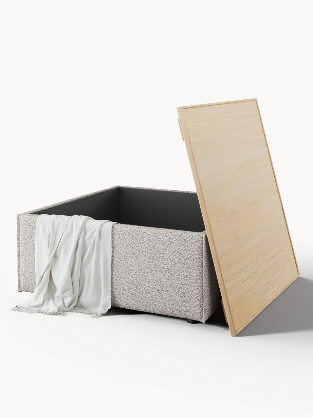 Reposapiés puf en tejido bouclé con espacio de almacenamiento Lennon
