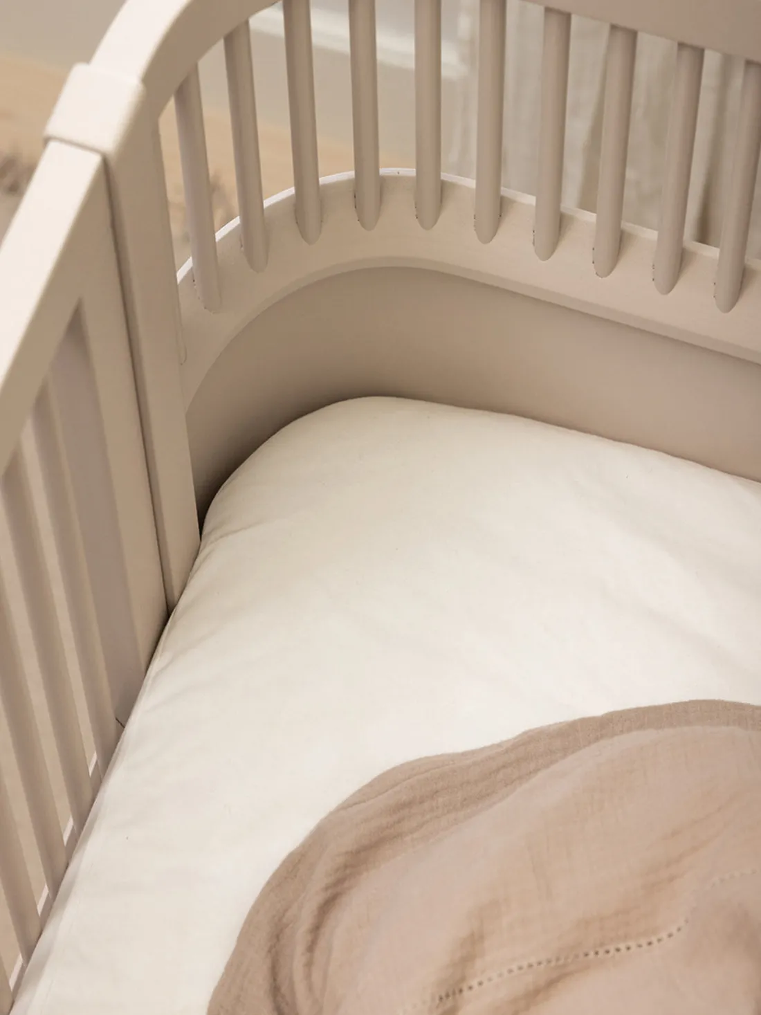 Esta sábana ajustable tiene una banda elástica alrededor y está hecha de algodón orgánico con certificación GOTS en Europa.