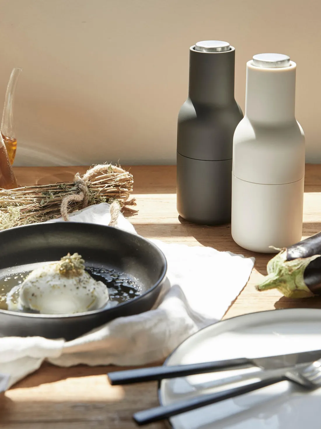 BOTTLE GRINDER es un juego de dos piezas, un salero y un pimentero, cada uno equipado con un potente molinillo de cerámica que muele sin esfuerzo una gran variedad de especias. El juego tiene forma de botella que se adapta cómodamente a la mano y se presenta en una gama de materiales y colores duraderos. El diseño vertical es fácil de usar, rellenar y limpiar, y garantiza que las superficies queden libres de residuos no deseados mientras los alimentos se sazonan a la perfección.
