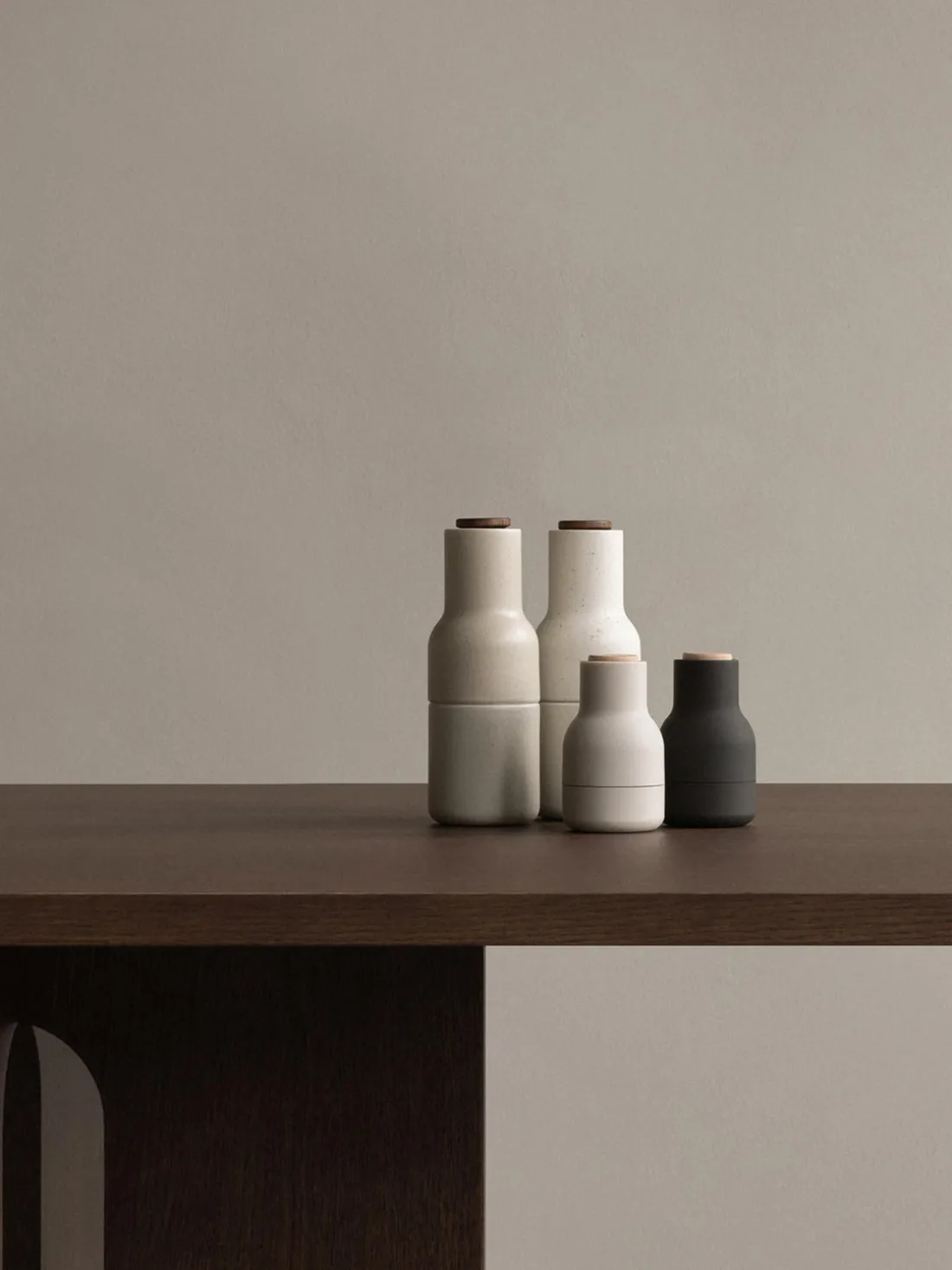 BOTTLE GRINDER es un juego de dos piezas, un salero y un pimentero, cada uno equipado con un potente molinillo de cerámica que muele sin esfuerzo una gran variedad de especias. El juego tiene forma de botella que se adapta cómodamente a la mano y se presenta en una gama de materiales y colores duraderos. El diseño vertical es fácil de usar, rellenar y limpiar, y garantiza que las superficies queden libres de residuos no deseados mientras los alimentos se sazonan a la perfección.