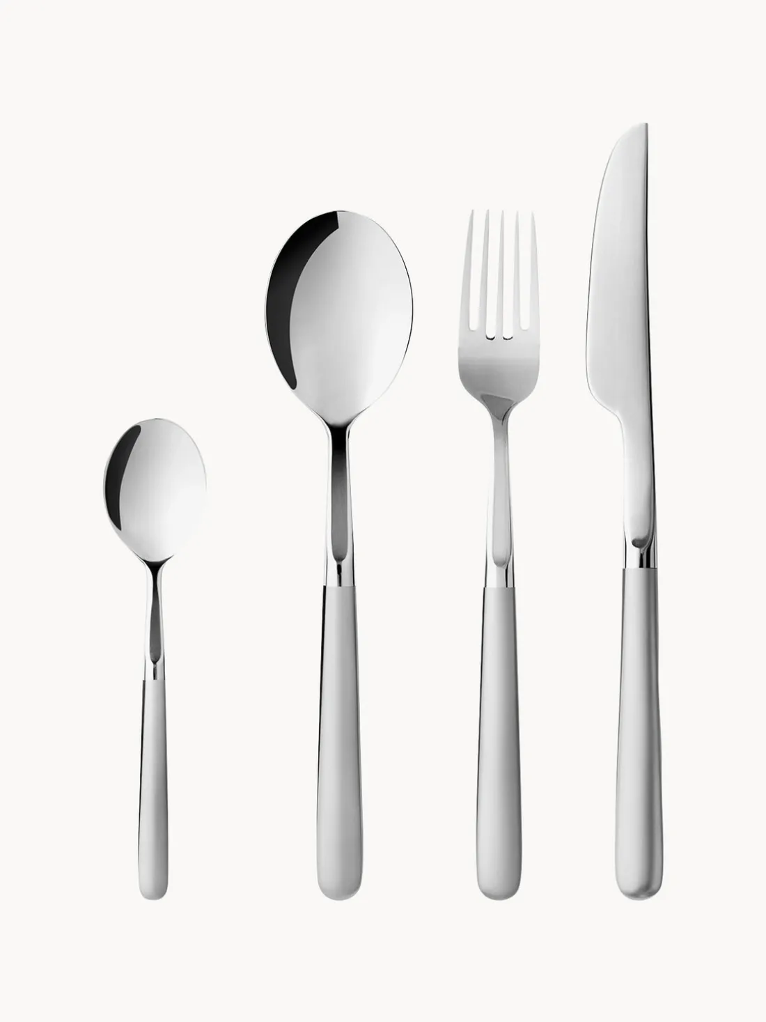 Cubertería de 16 piezas que consta de 4 tenedores, 4 cuchillos, 4 cucharas y 4 cucharillas.