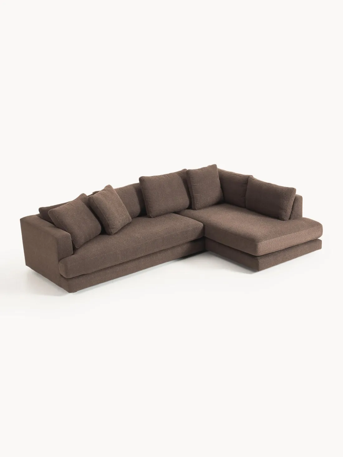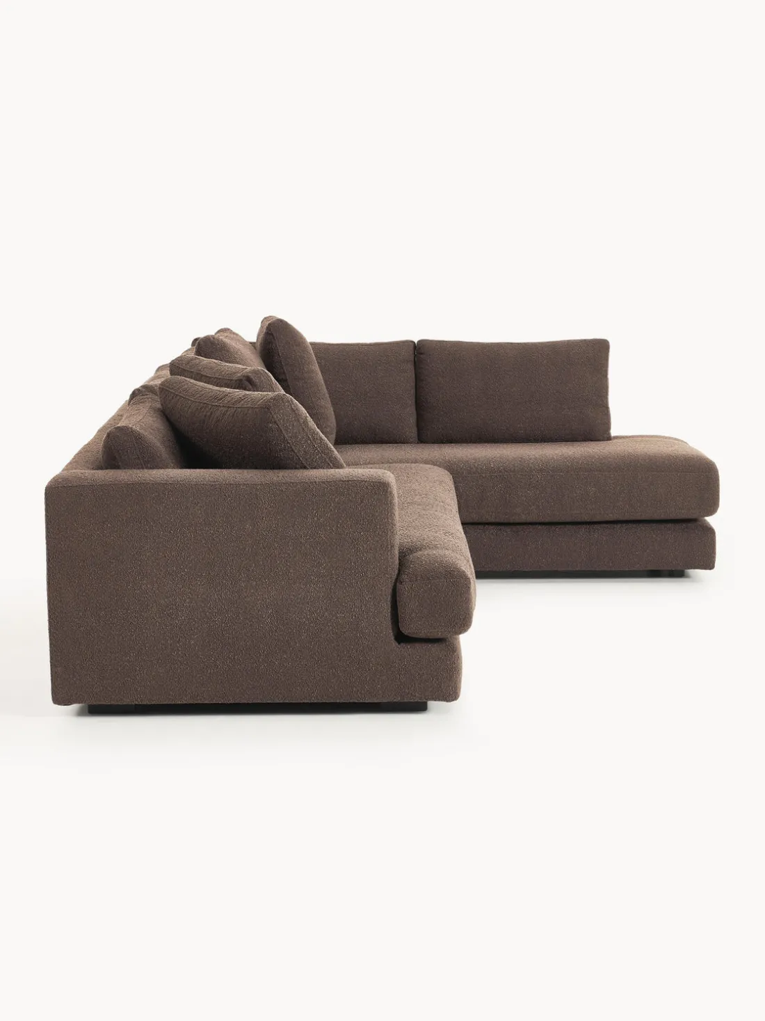 La chaise longue está en el lado derecho cuando estás frente al sofá.
