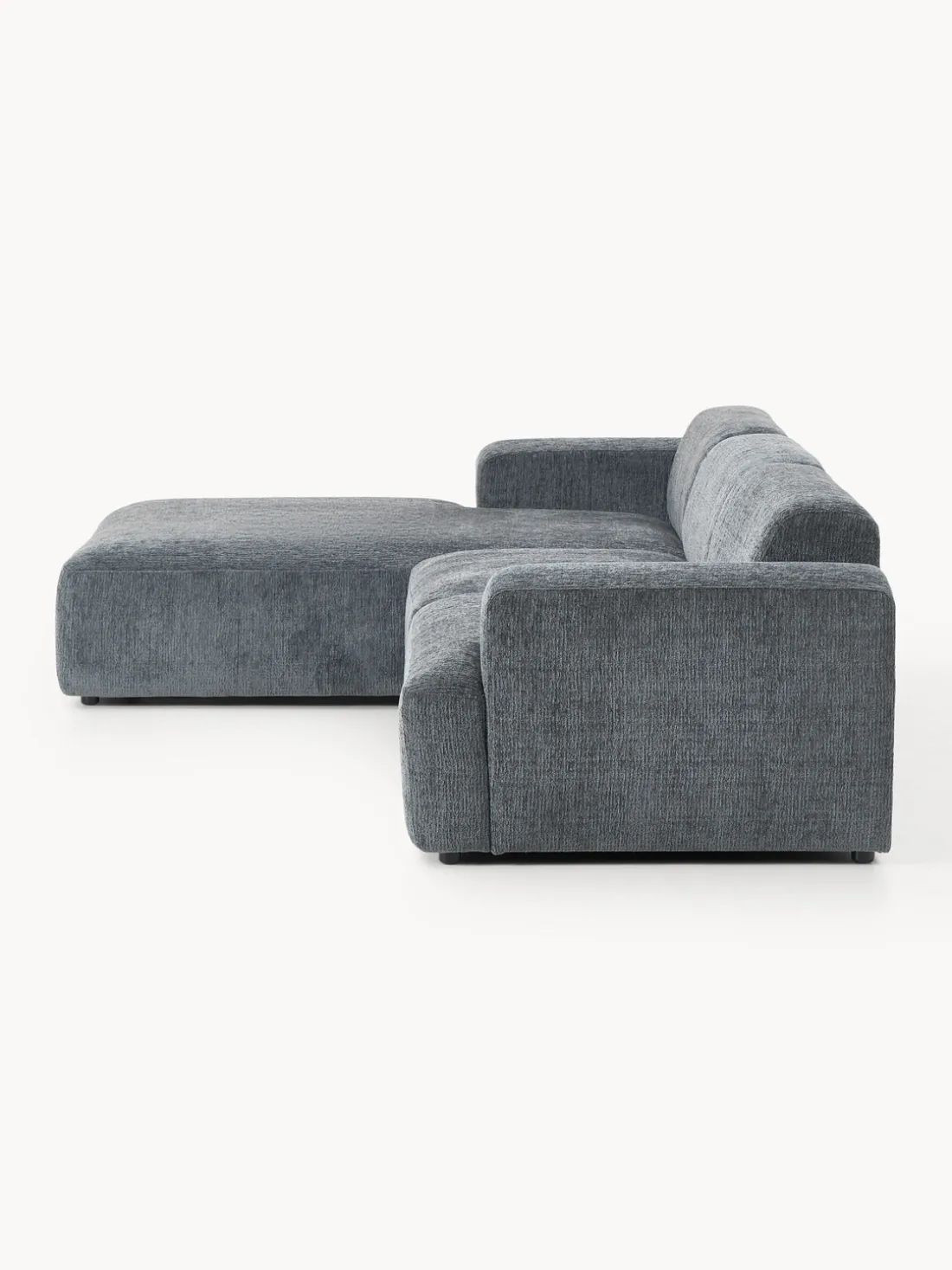 La chaise longue está en el lado izquierdo cuando estás frente al sofá.