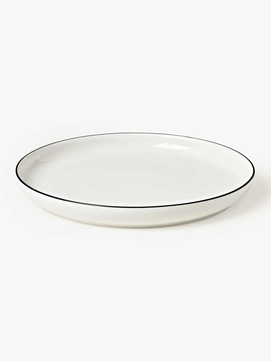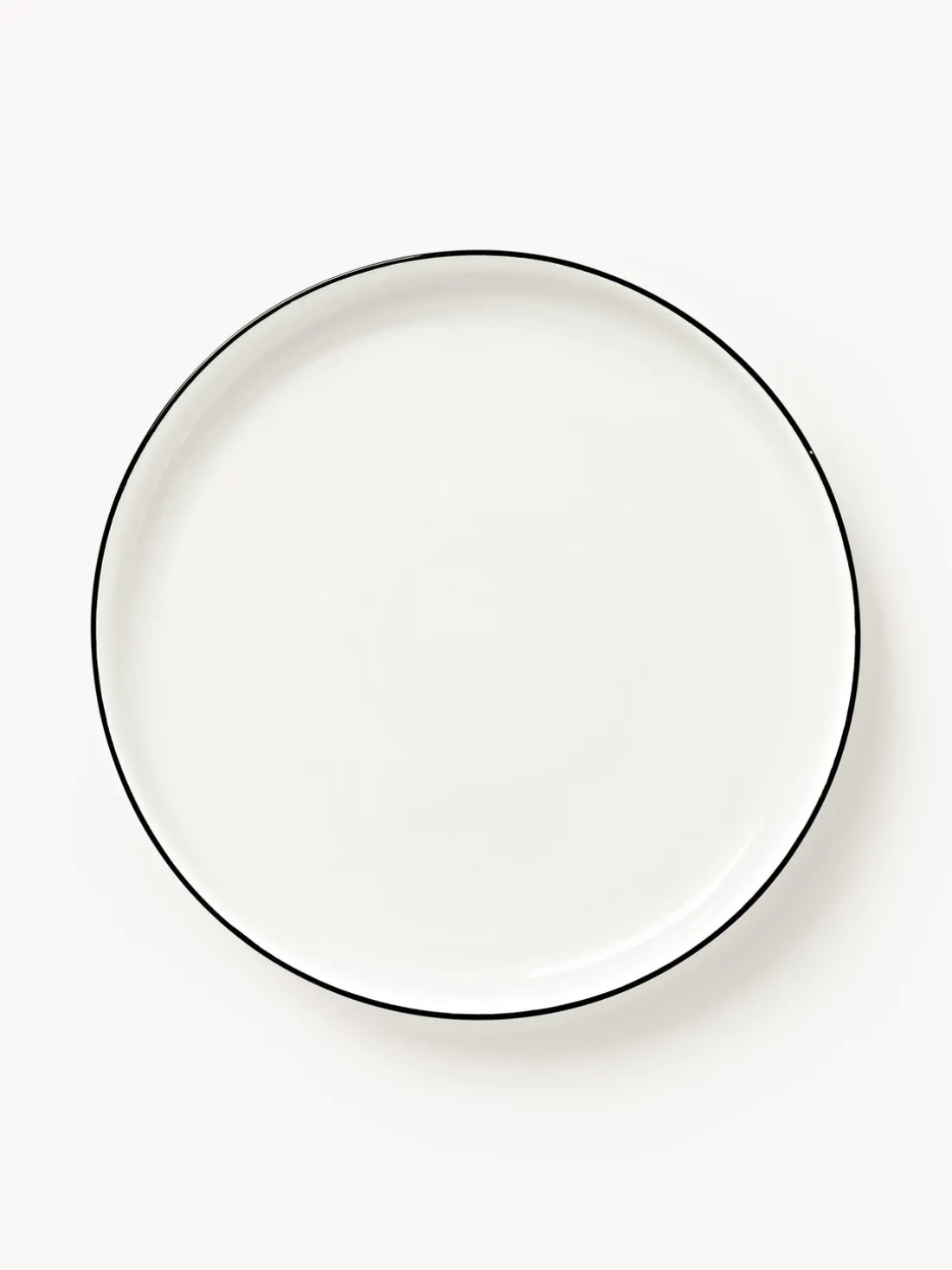 Esta vajilla de 18 piezas con borde negro consta de seis platos llanos, seis platos hondos y seis platos pequeños.