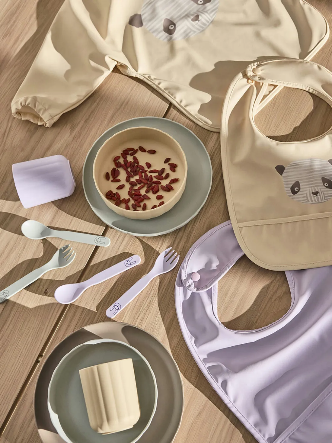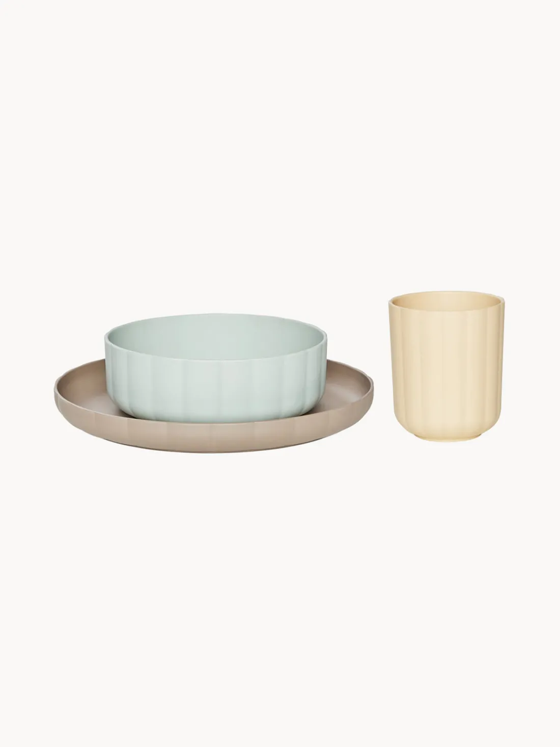 Vajilla infantil de 3 piezas compuesta por plato, cuenco y taza. Adecuado para niños a partir de 1 año.