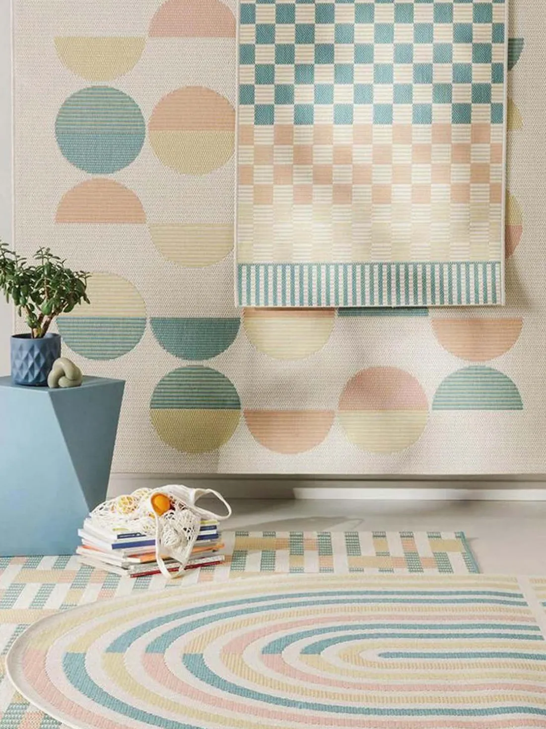 Hecha de una fibra sintética funcional, la alfombra es duradera y fácil de cuidar.