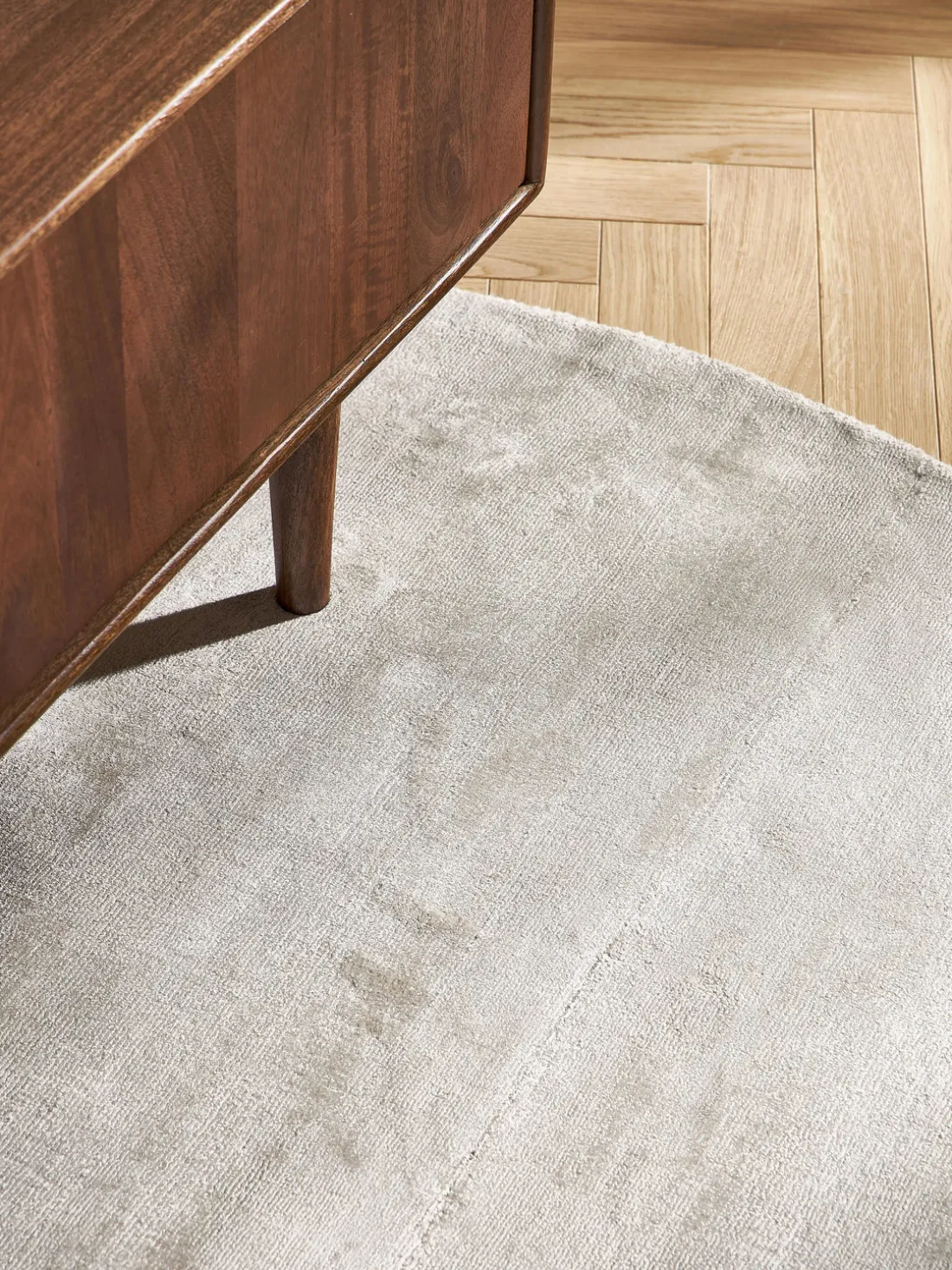 Esta alfombra de pelo corto de viscosa cautiva por su color brillante y su estructura irregular: la viscosa brilla maravillosamente a la luz del día, tiene un color especial que subraya el carácter de Jane.