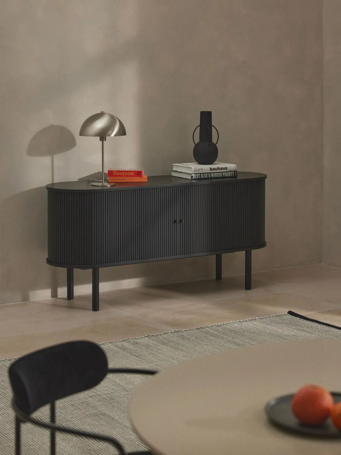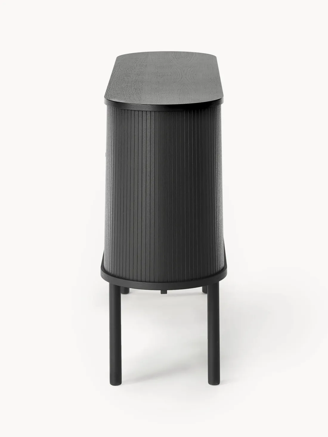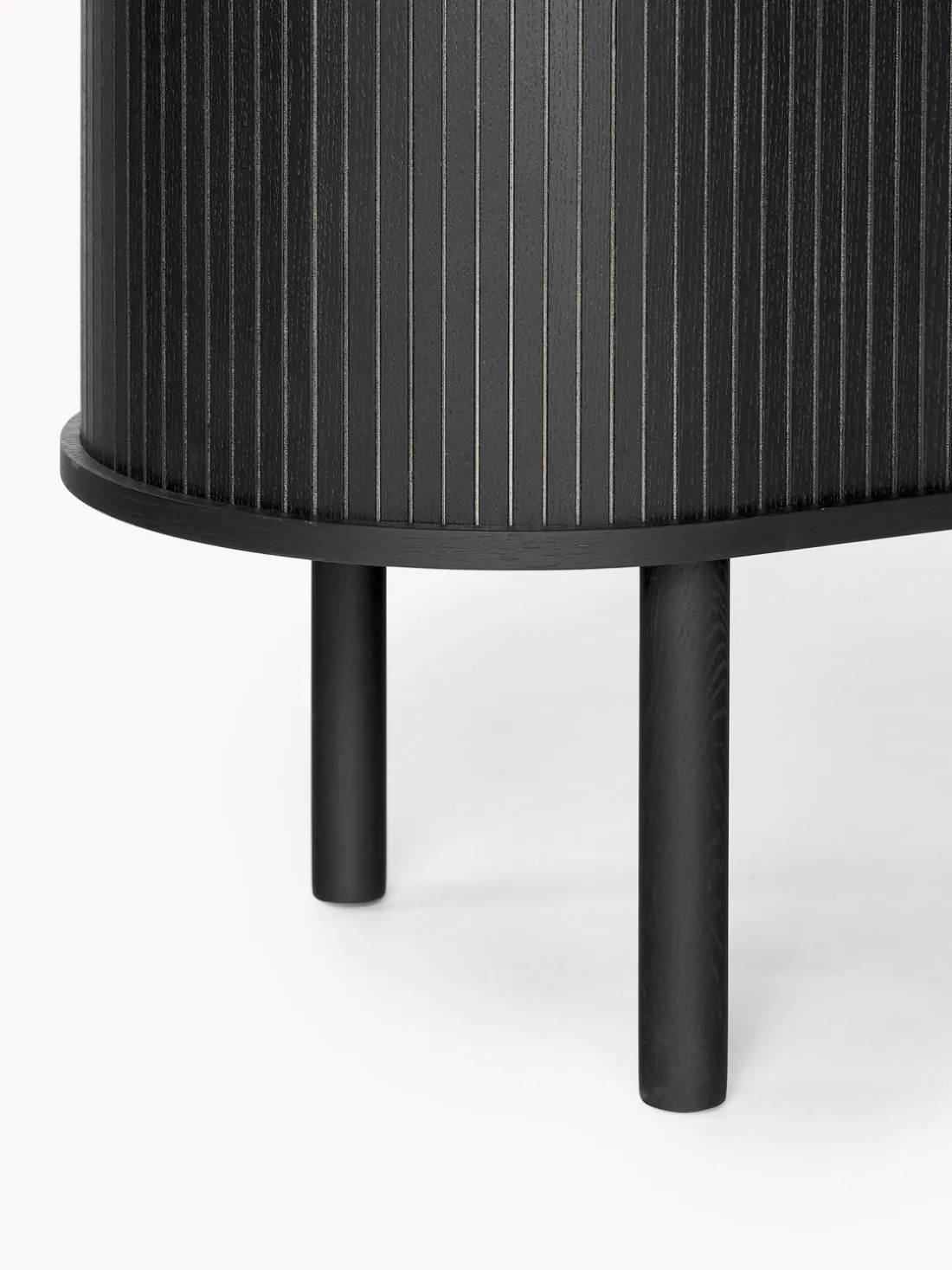 El producto tiene dos puertas correderas, dos compartimentos y un pasacables en la parte trasera.