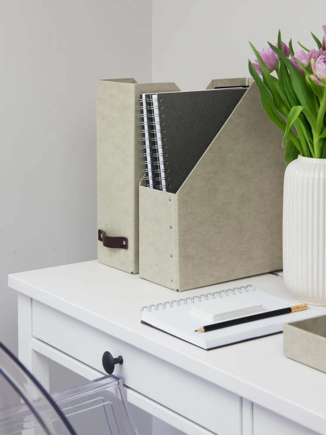 ¿Quieres organizar tus papeles importantes, guardar los manuales de tus productos o los dibujos de los niños o tener a mano tu revista favorita? El archivador WILLIAM es la solución perfecta para combinar organización y estilo y le ayuda a mantener ordenados tu hogar y oficina. El archivador con asa decorativa de cuero mantiene tu oficina ordenada y es adecuado para documentos A4 estándar.