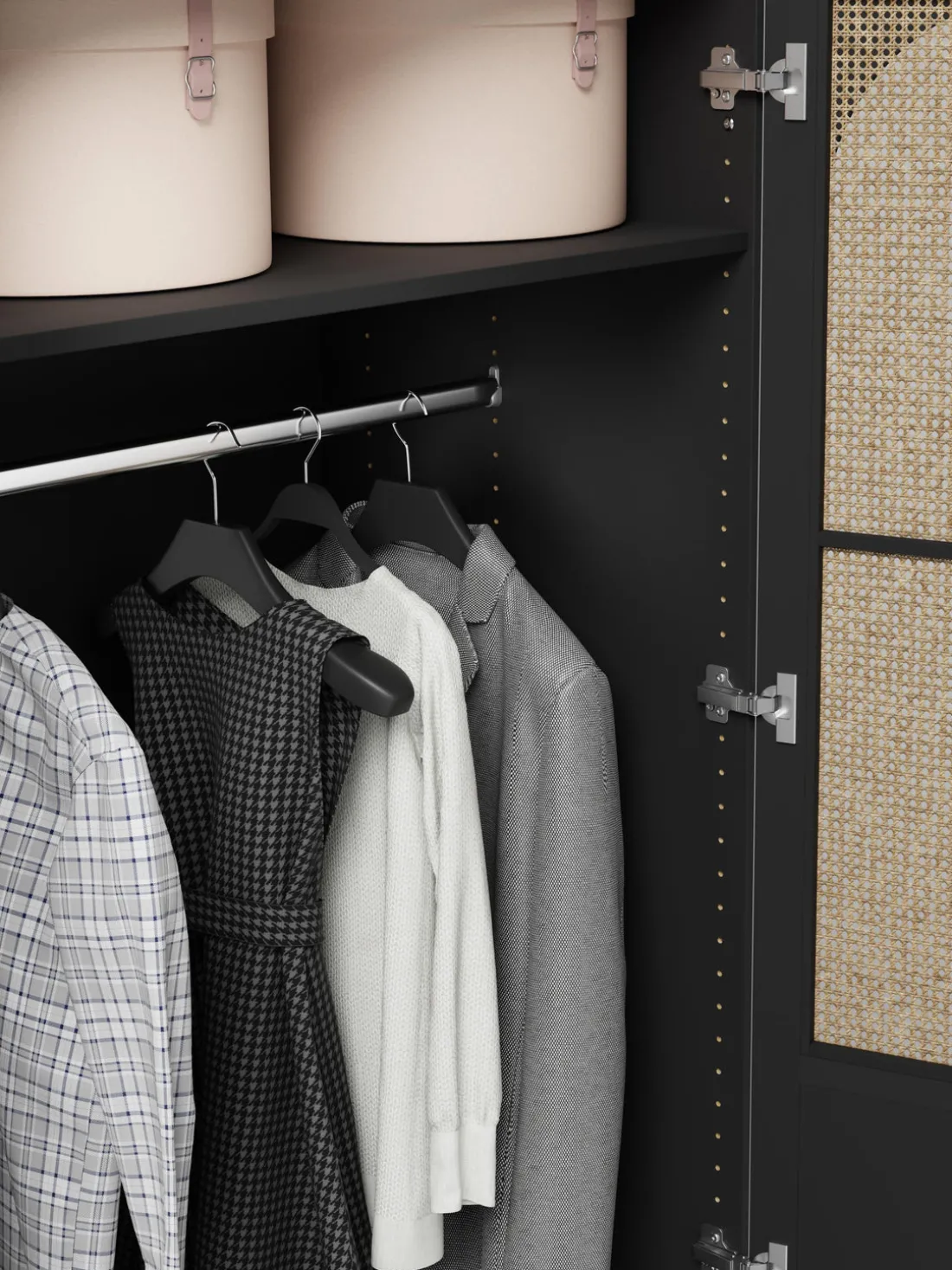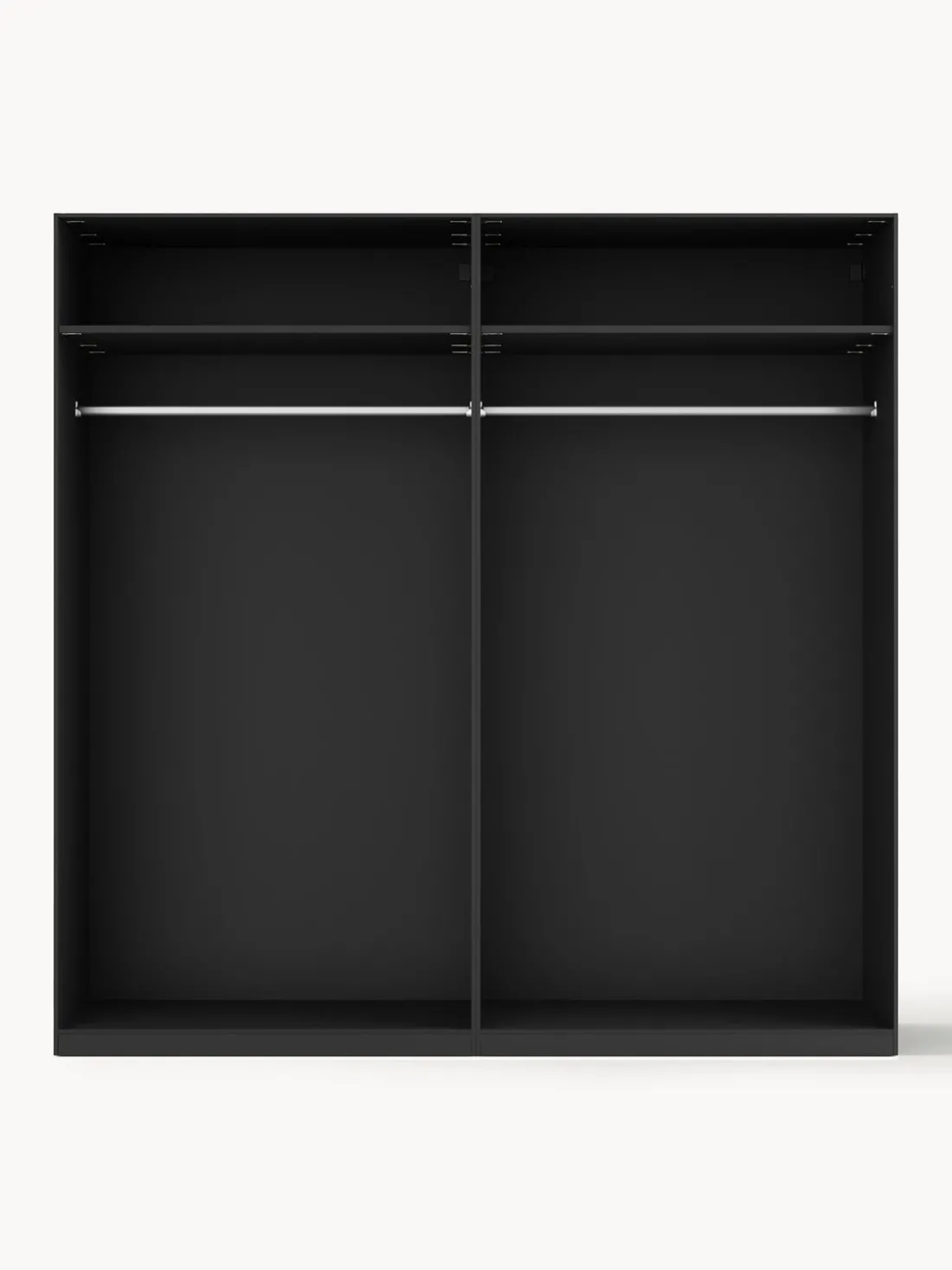 – Armario modular que consta de 2 módulos con diseño interior Basic que incluye 2 barras para colgar ropa y 2 estantes