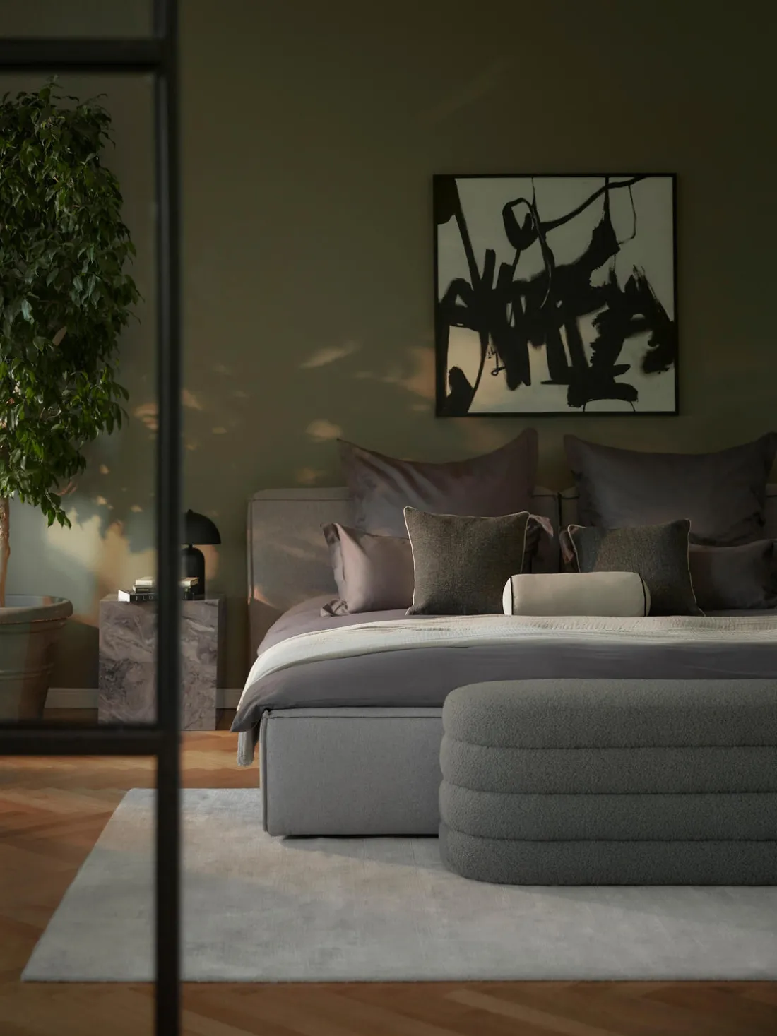 Banco tapizado en tejido bouclé Alto
