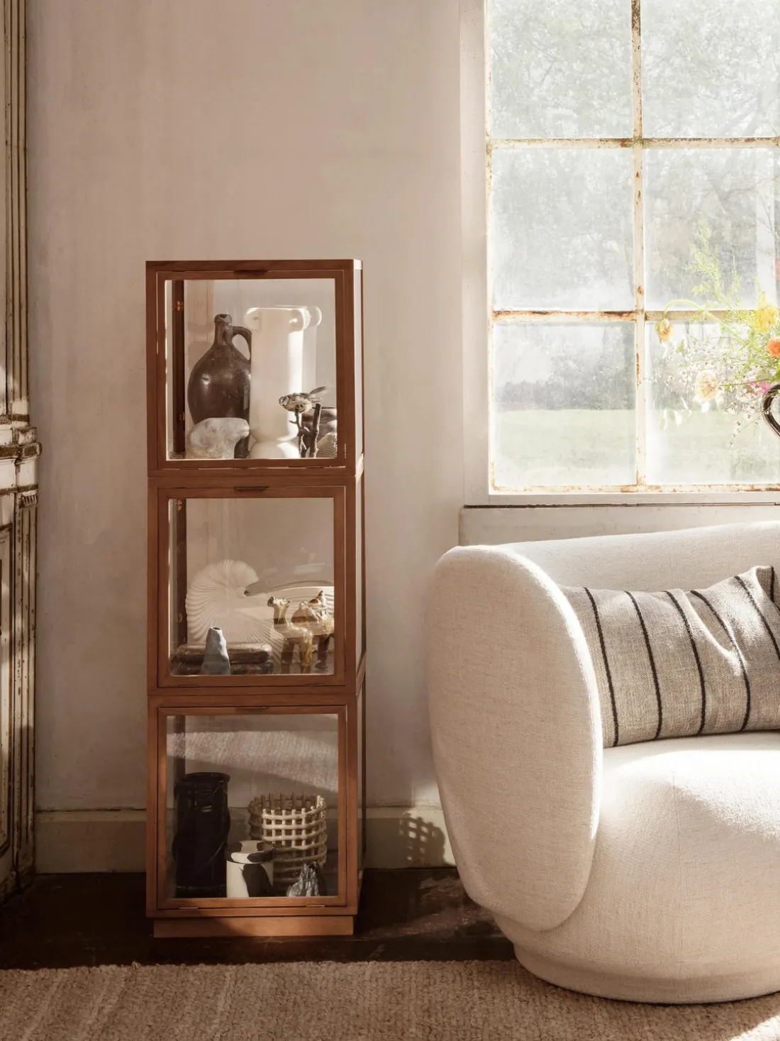 En las vitrinas Miru podrás guardar y exponer tus objetos favoritos, ya sean libros, jarrones, reliquias familiares u otros objetos preciados. Las cajas decorativas y apilables con marcos de roble añaden un toque artístico y original a tu interior. Puedes utilizarlas individualmente o combinarlas con otras cajas para presentar tus objetos favoritos de forma decorativa.